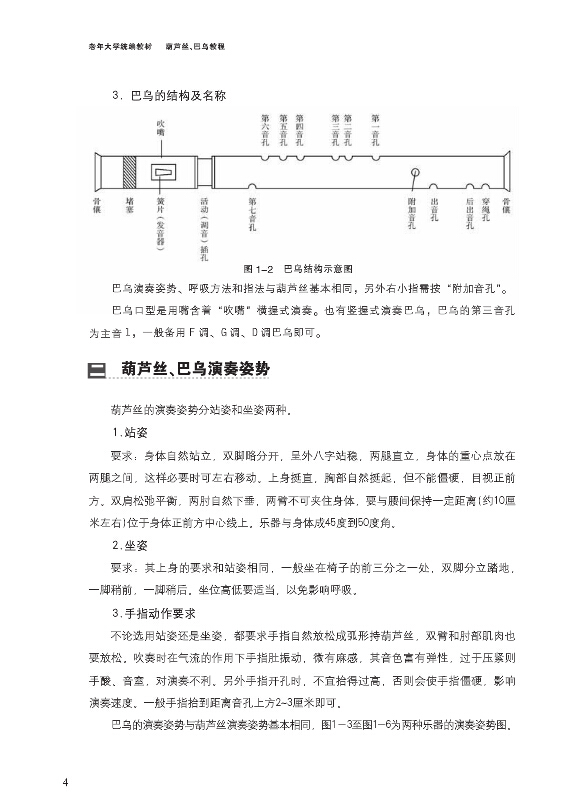 《老年大学统编教材:葫芦丝、巴乌教程》共分四个部分:第一部分是葫芦丝、巴乌简介和演奏法,以及乐理小常识等;第二部分为基础练习、技巧练习,同时加入了重奏形式,使学习者不仅注重独奏的训练,还适当涉猎一点重奏的练习,以培养重奏中所需的音准、节奏、声部平衡、合作能力等:第三部分以通俗易懂的流行歌曲和乐曲为主,注重可听性,易被各不同学习阶段的爱好者所接受;第四部分选用了近年来一些独奏曲的精品之作以及作者创作和改编的一些乐曲。