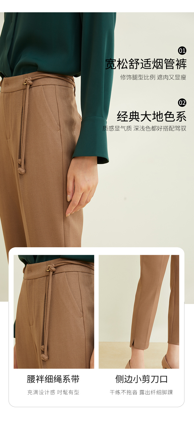 玳莎绳带设计感烟管裤女秋季新款上班通勤显瘦垂感休闲长裤 CC36308