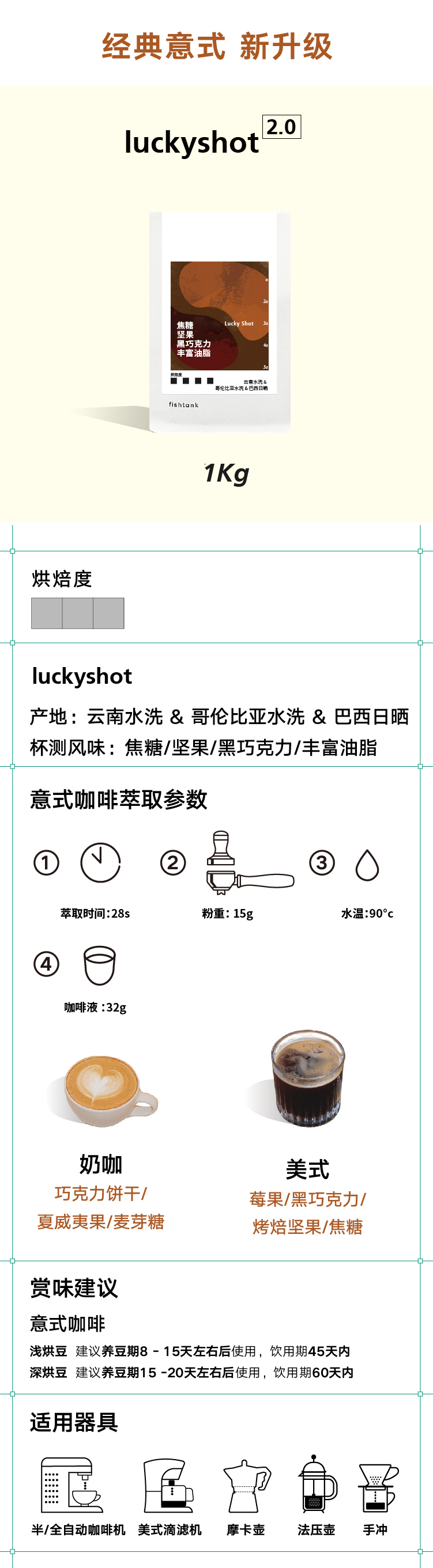 【1kg囤货装】经典深烘 luckyshot 意式拼配豆