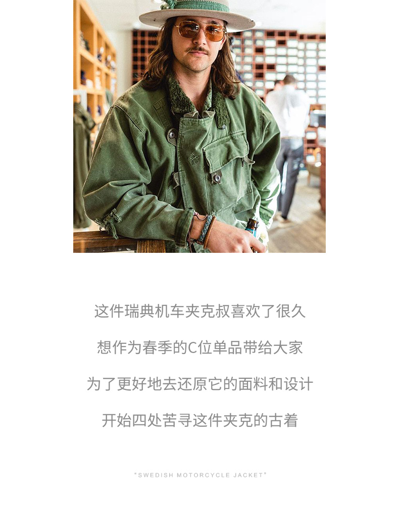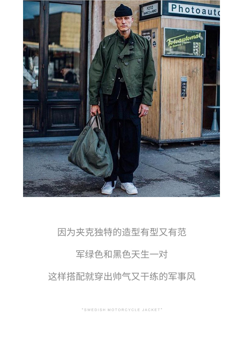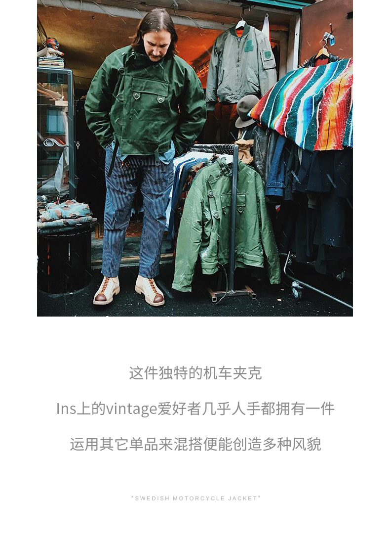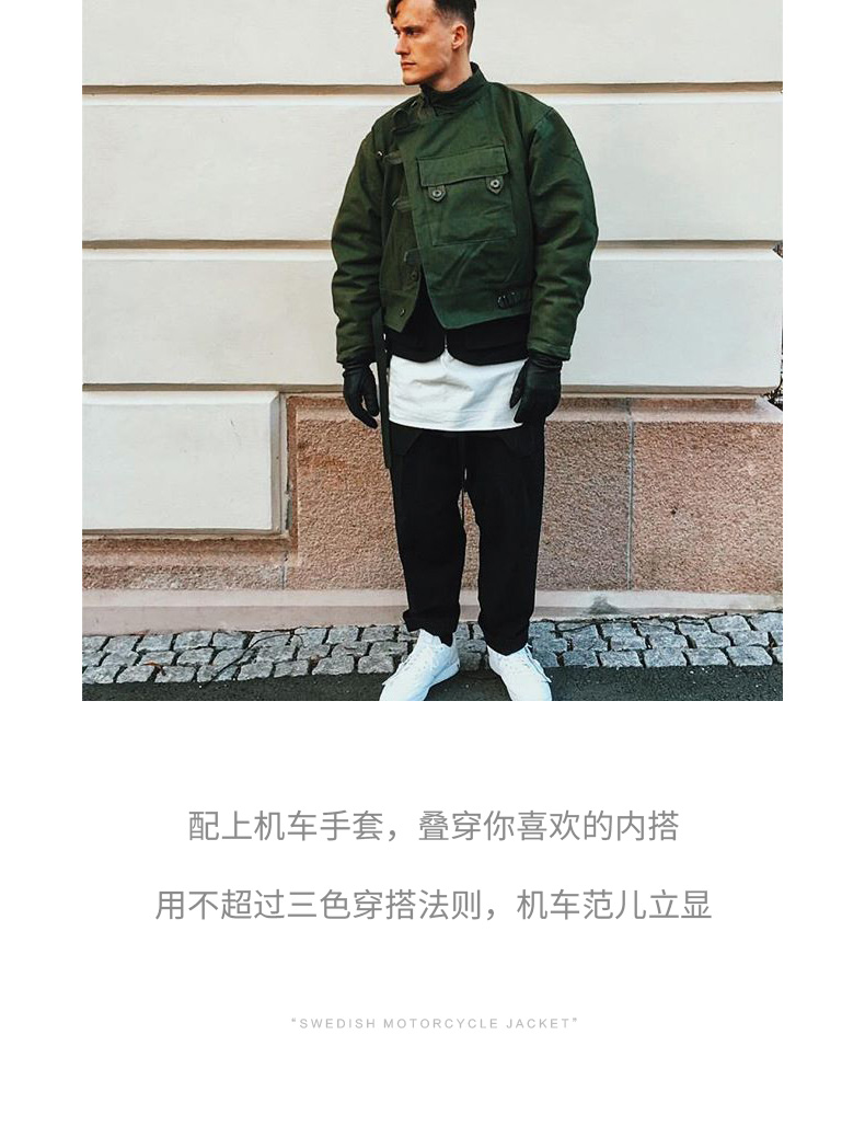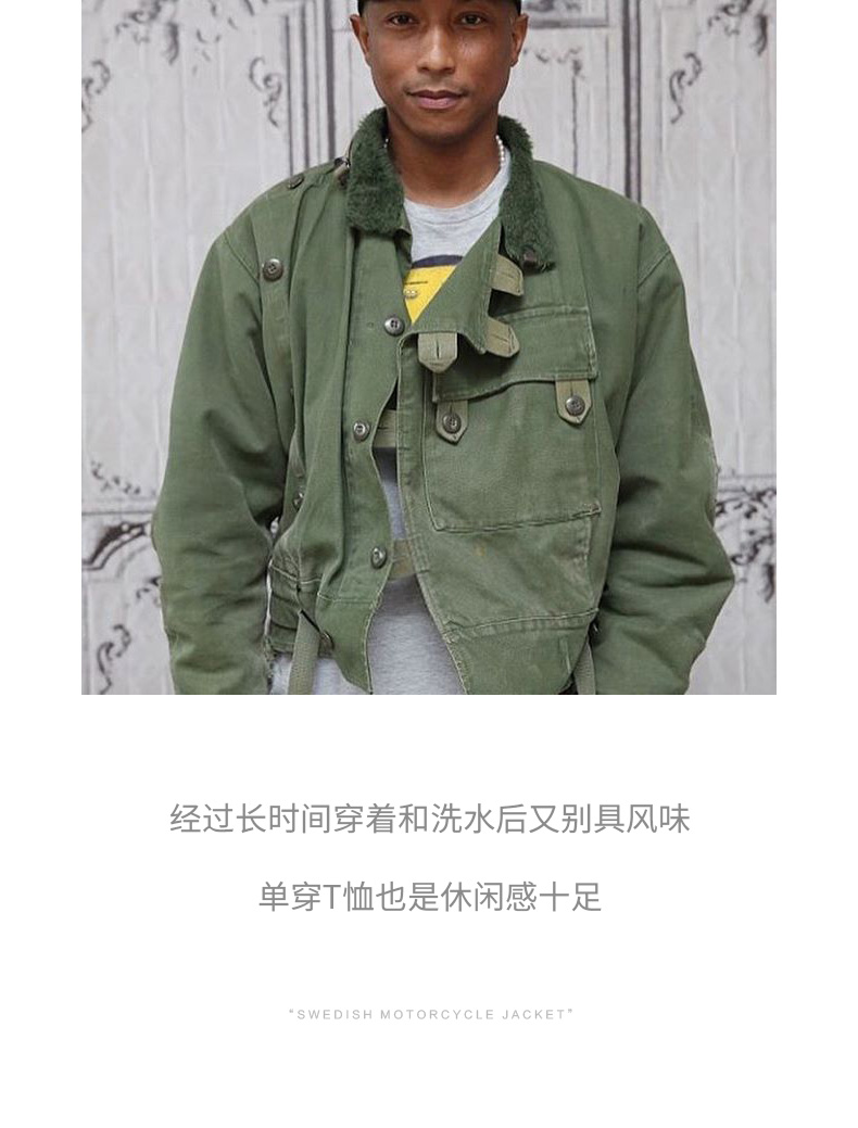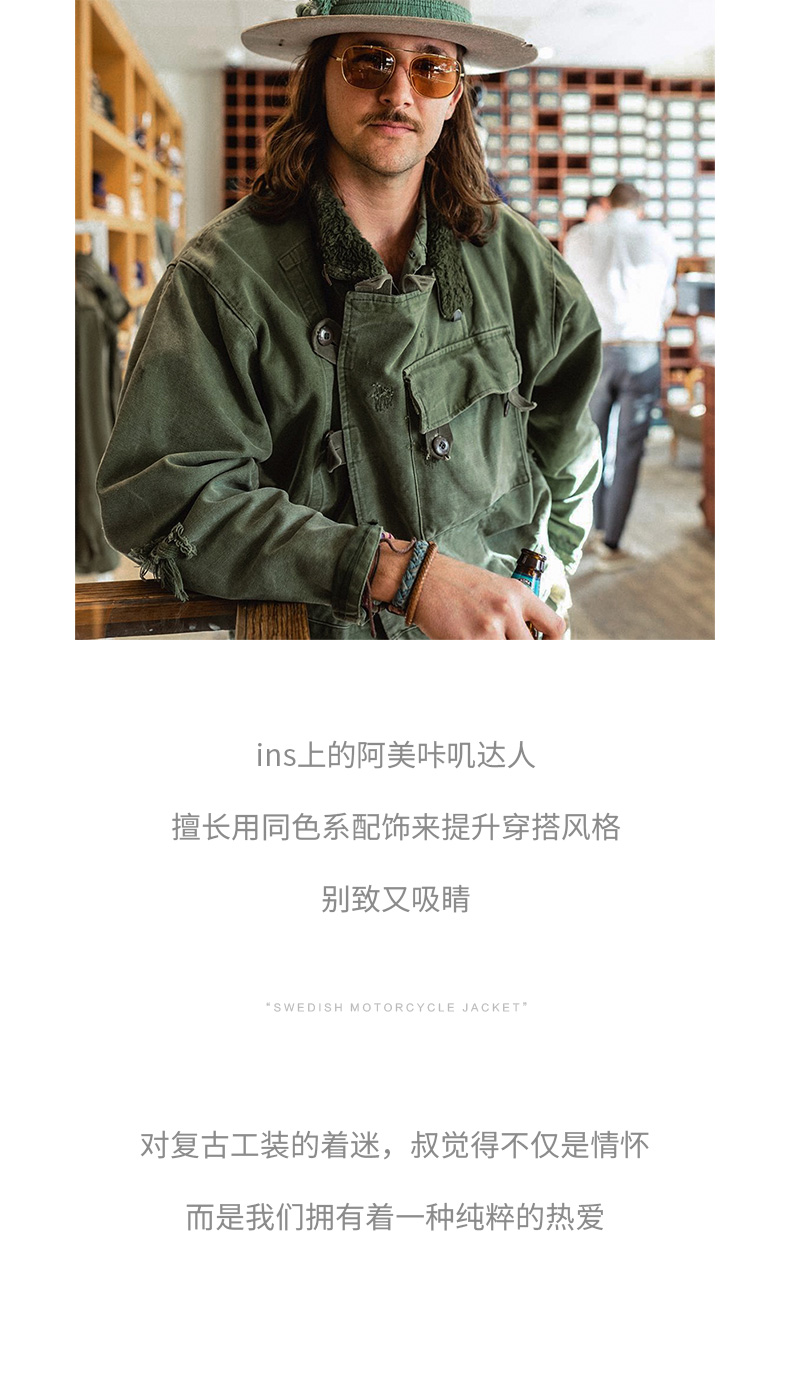 工装优选 美式vintage瑞典机车夹克阿美咔叽纯棉洗水军绿色