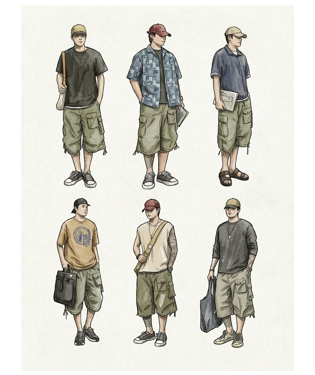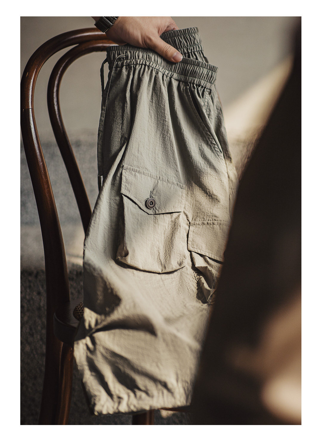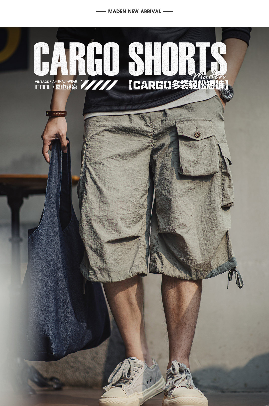 马登工装美式复古塔丝隆短裤日系通勤宽松多口袋cargo五分裤男夏