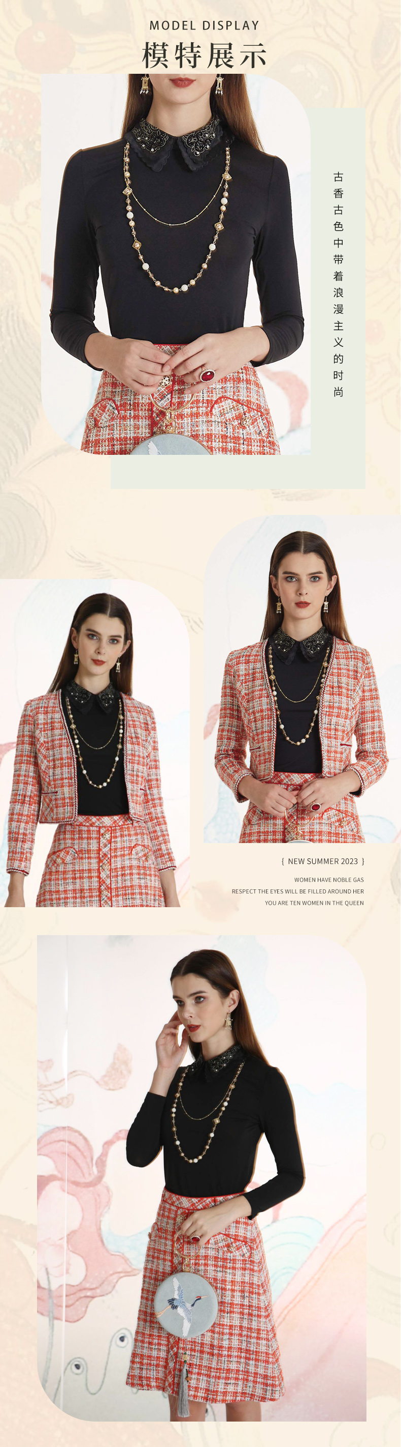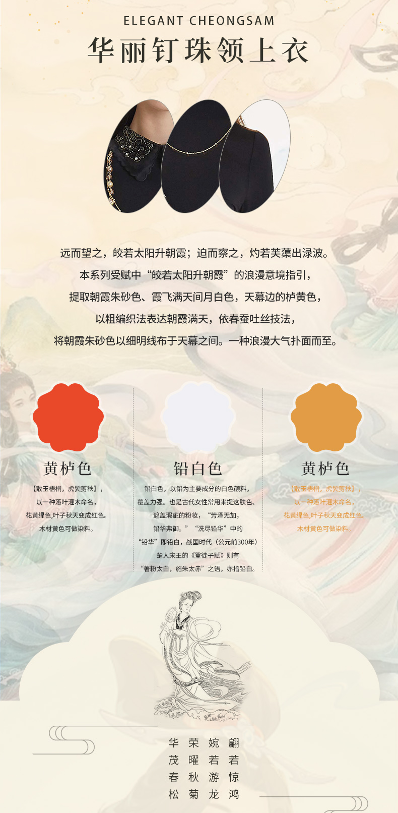 品牌风格:源自千年文学和万年艺术的时装,让你的气质内涵一枝独秀,精彩的品质,华丽的风格,炫耀的视觉,让你的衣品从此与众不同,标记你深厚的文化内涵与艺术气息。