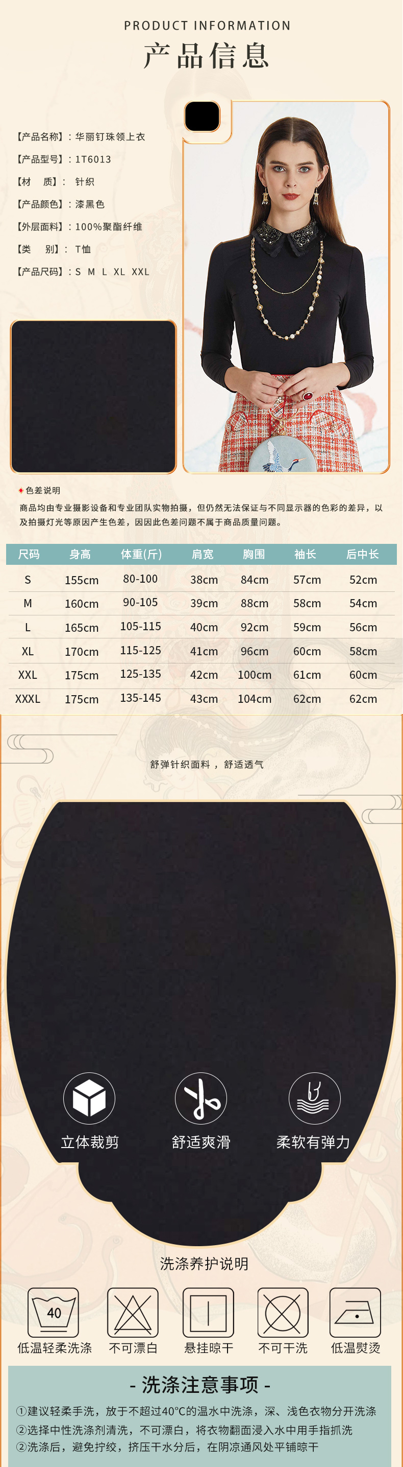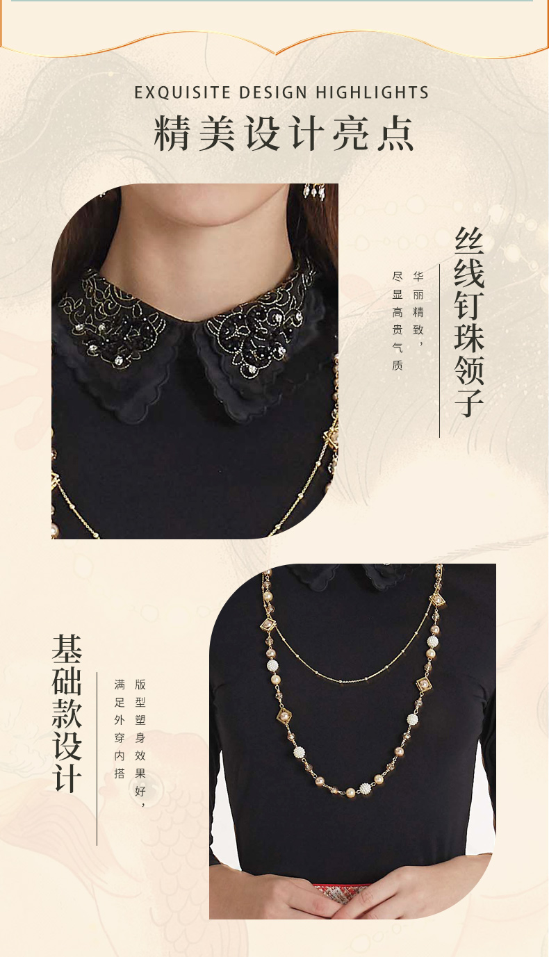 【伯妮斯茵】气质修身丝线钉珠领子T恤--皎若朝霞--《洛神赋》1T6013