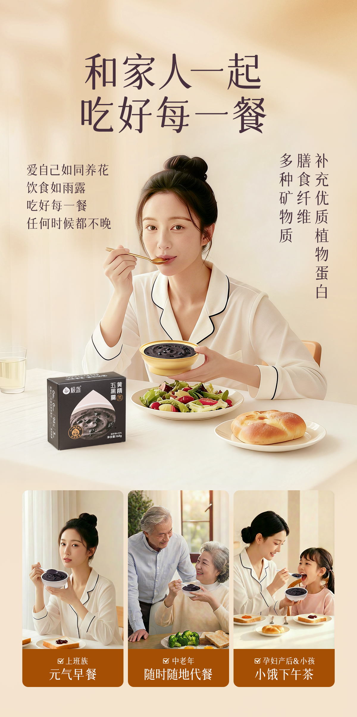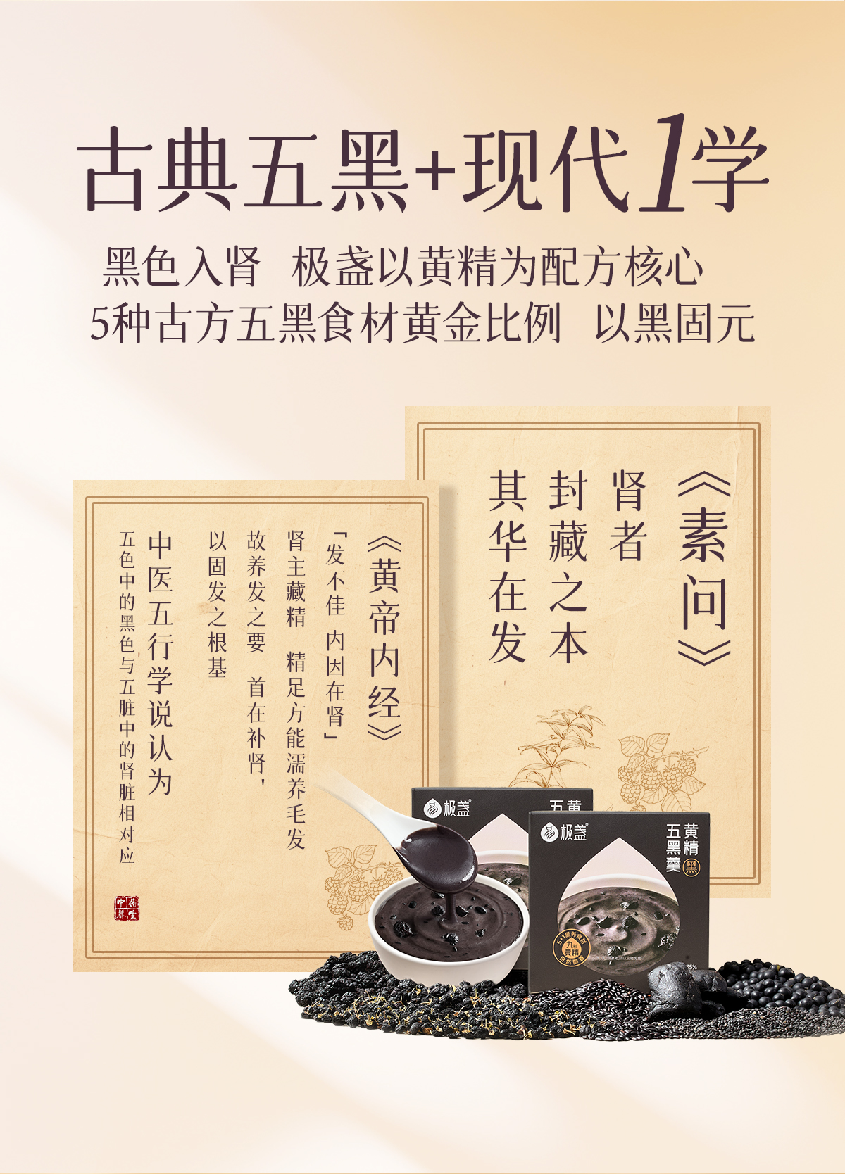 极盏黄精五黑羹 以黑养黑固发之元 开盖即食