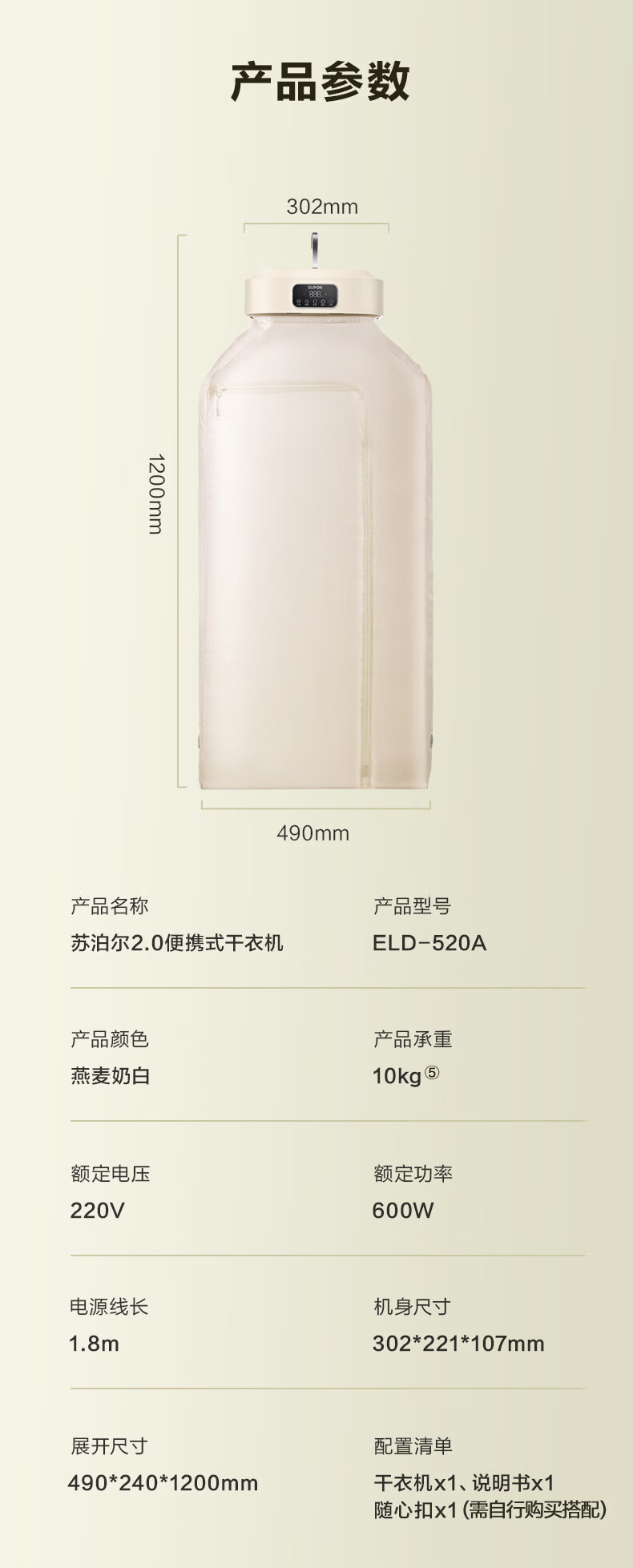 SUPOR苏泊尔便携式干衣机ELD-520A/燕麦奶白/O//