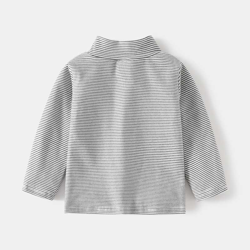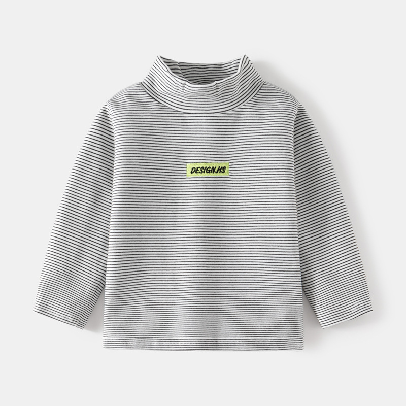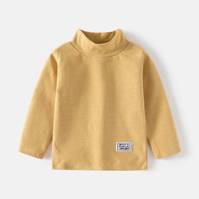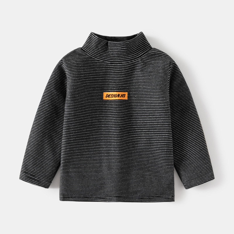 【儿童高领条纹打底衫】2023秋冬韩男童德绒加厚高领长袖T恤宝宝打底