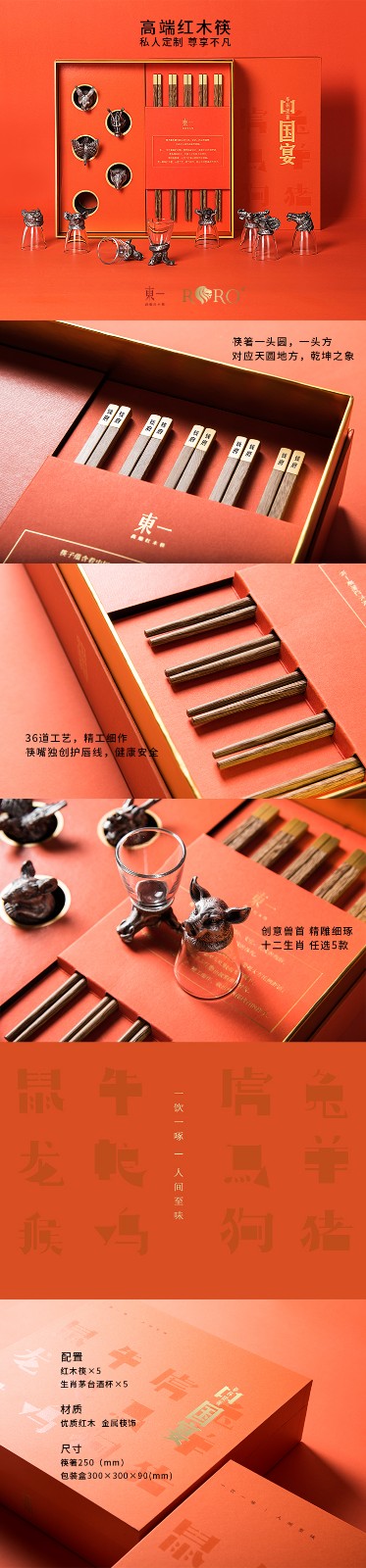 清朴堂 高端红木筷子生肖白酒杯五人装