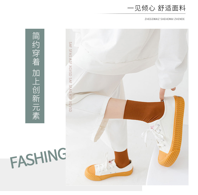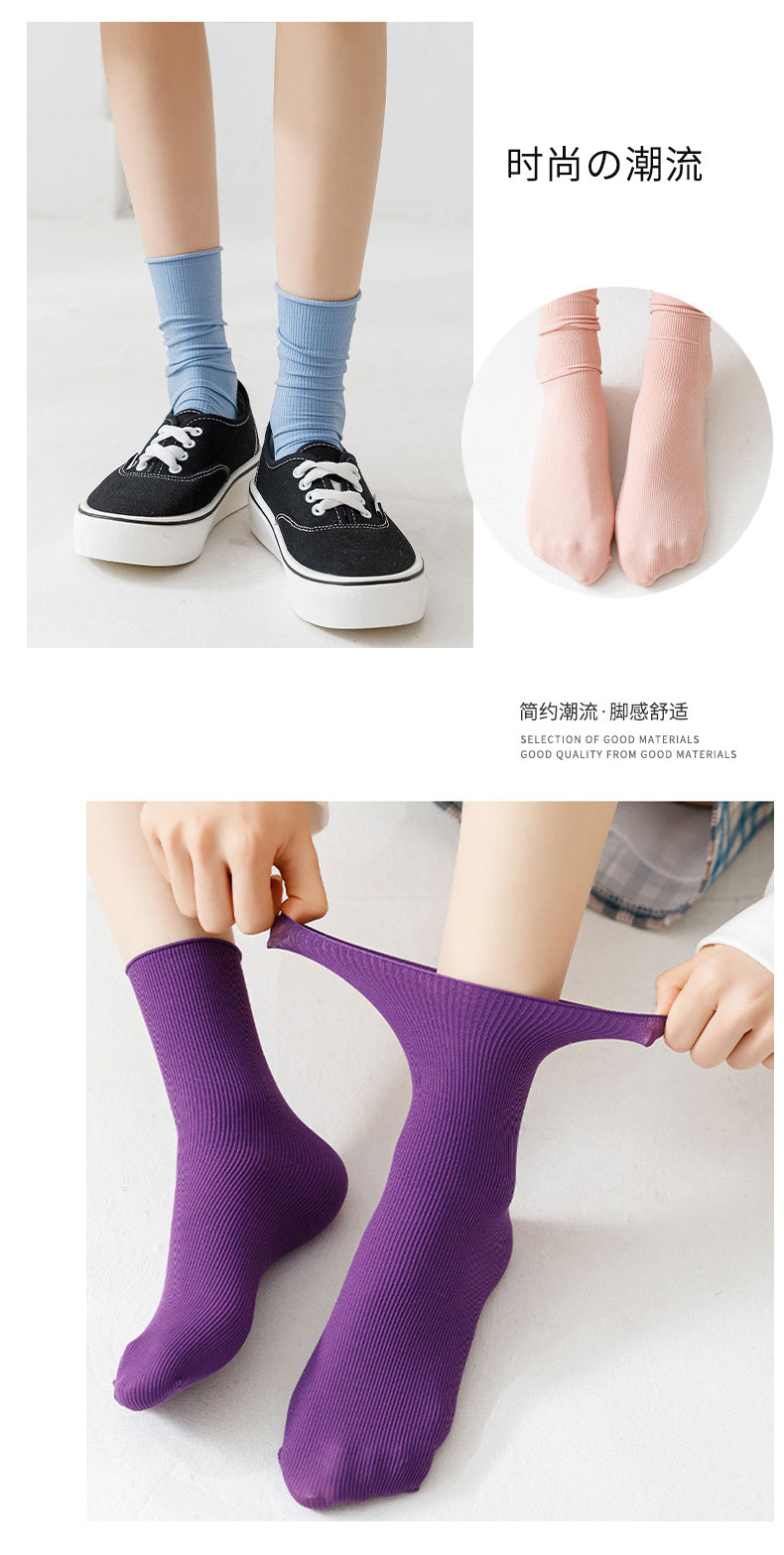 【6双更值!夏季薄款女冰冰袜】袜子凉感日系简约潮中筒长袜天鹅绒卷边堆堆袜子粉丝专属特价清仓