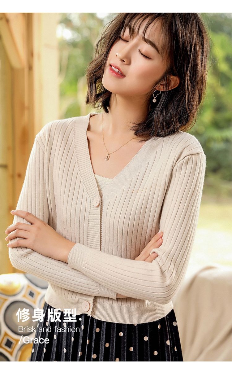 【初秋第1件针织衫❗️】V领百搭条纹针织开衫,修身显瘦,轻盈合体,柔软细腻,温柔高雅,清新流行色,极简主义,花样穿法,入秋气质外搭外套上衣