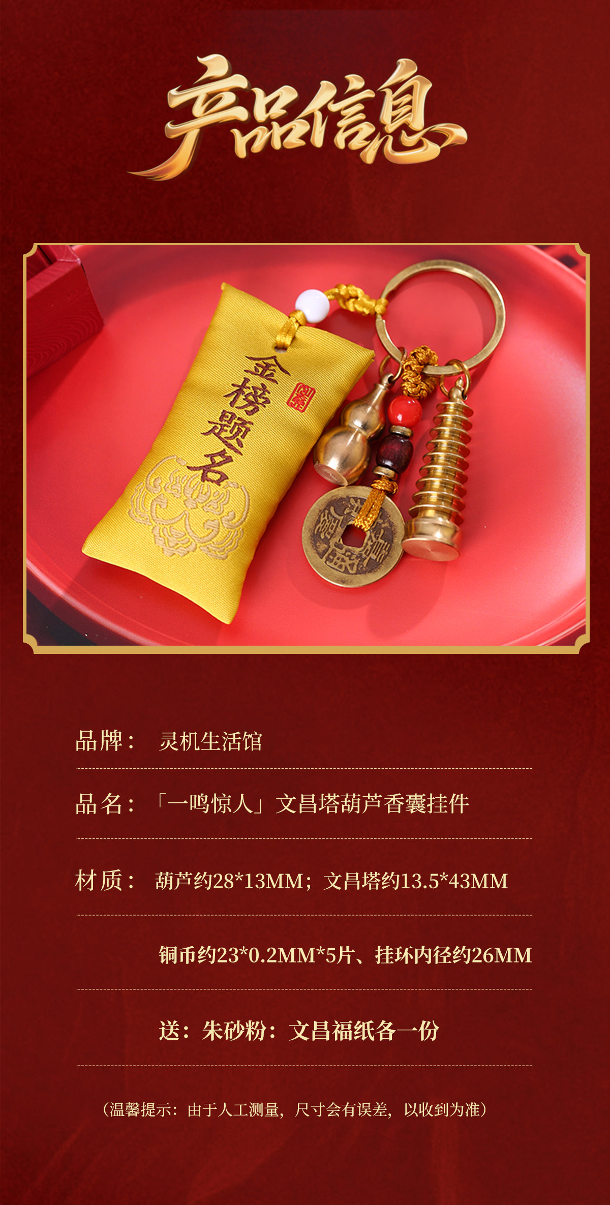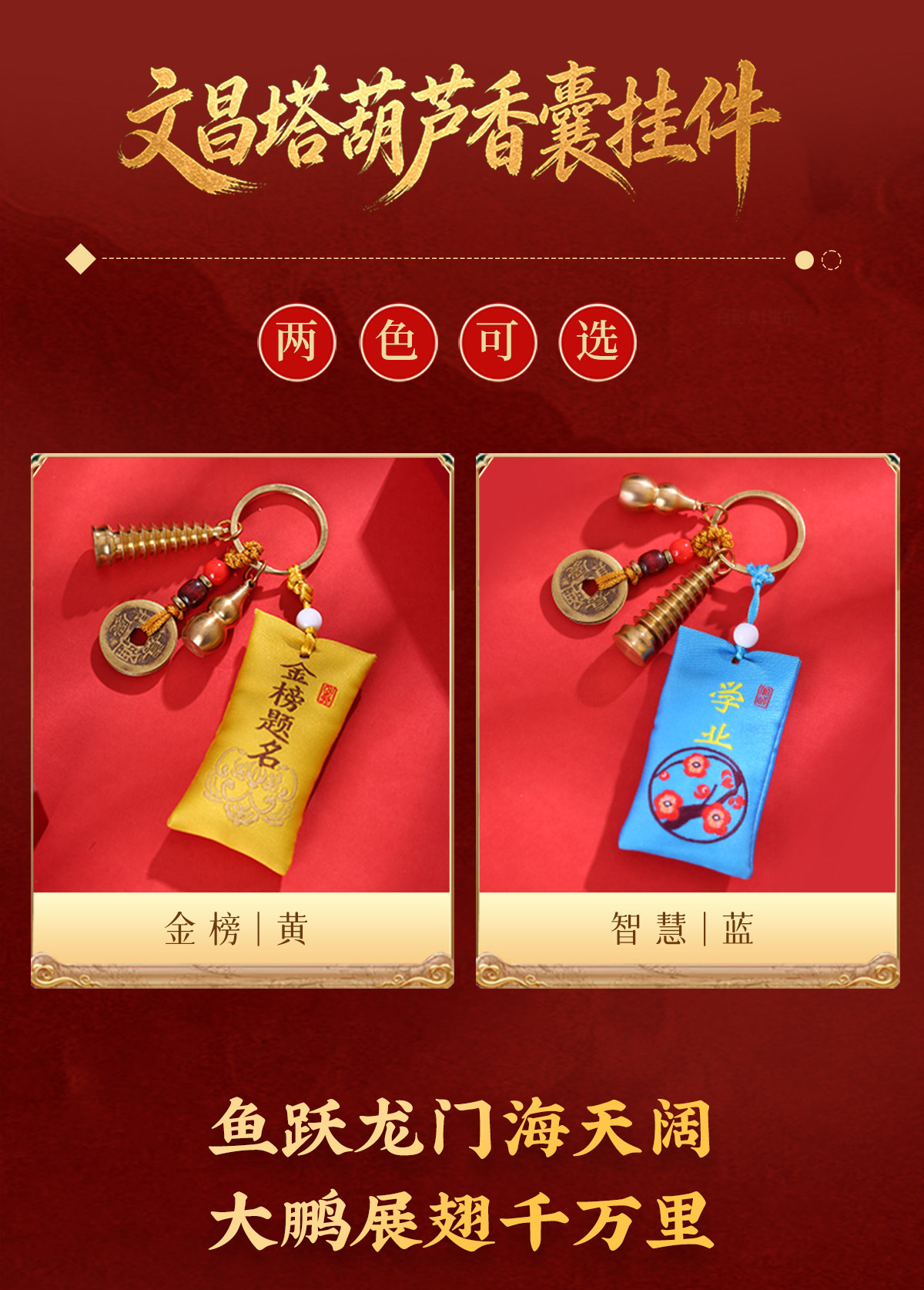 【祈愿吉品】一鸣惊人文昌塔葫芦香囊钥匙扣中考高考金榜题名礼物