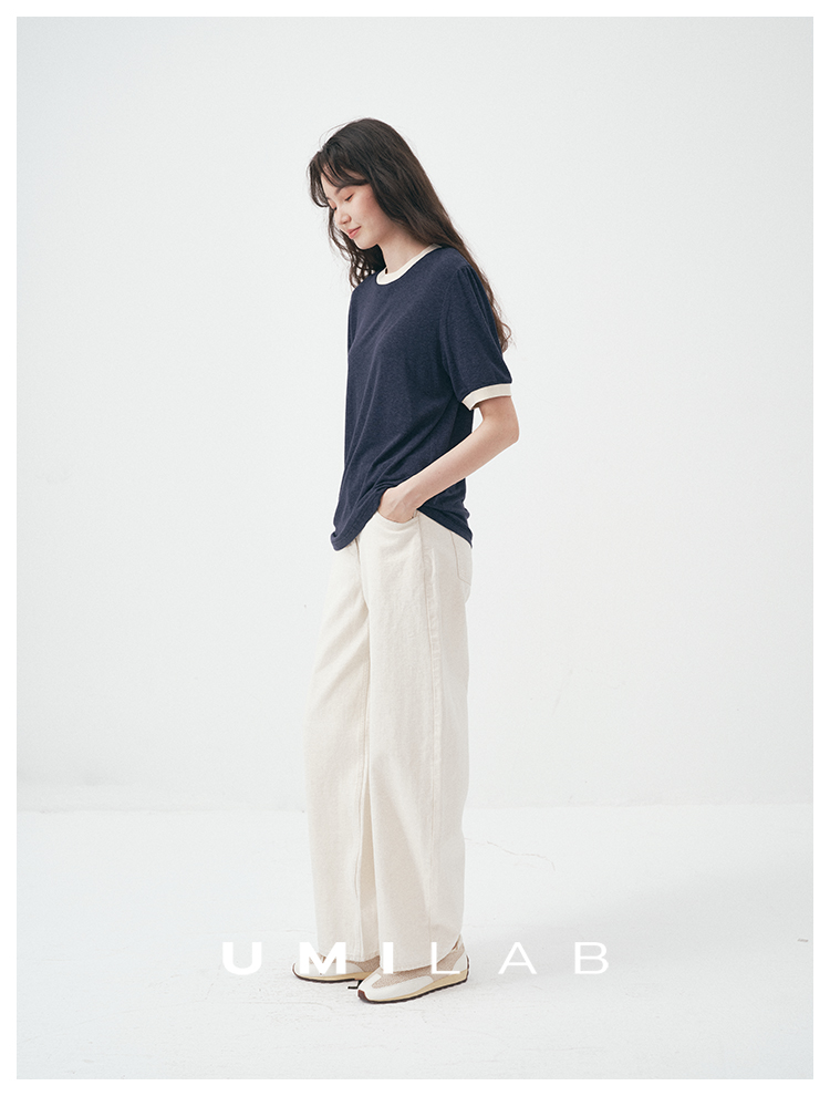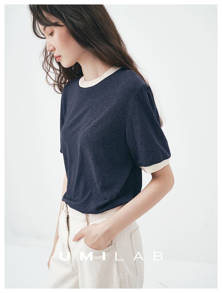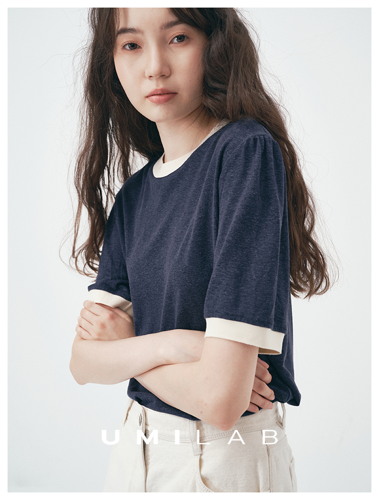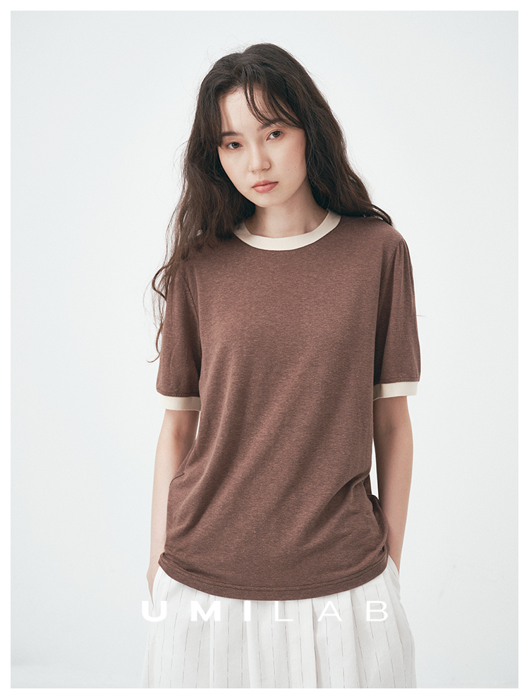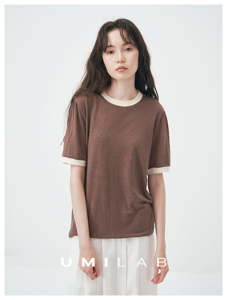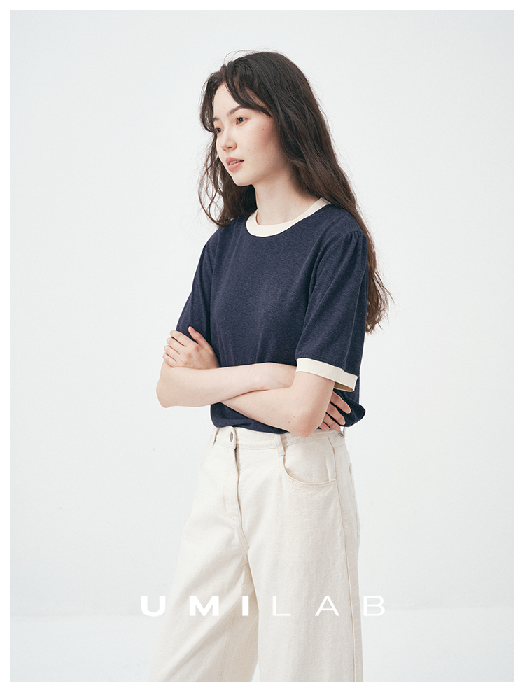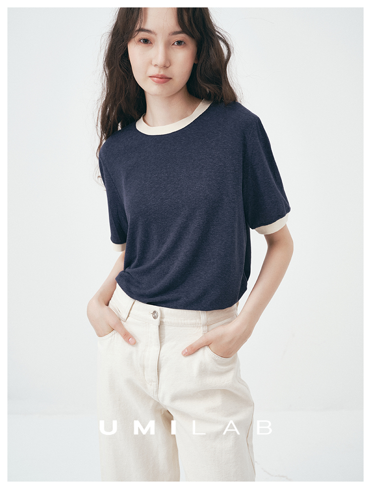 UMILAB|舒然*高质感天丝+汉麻复古雪花肌理撞色轻薄短袖T恤T755W