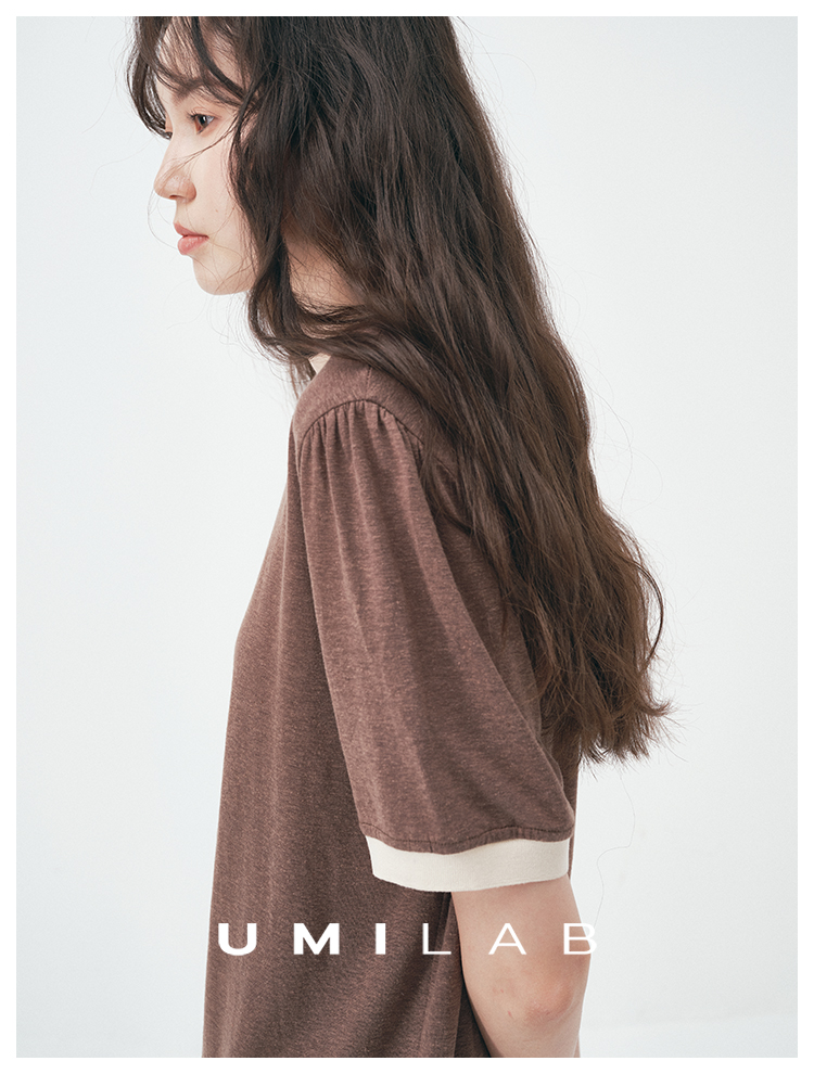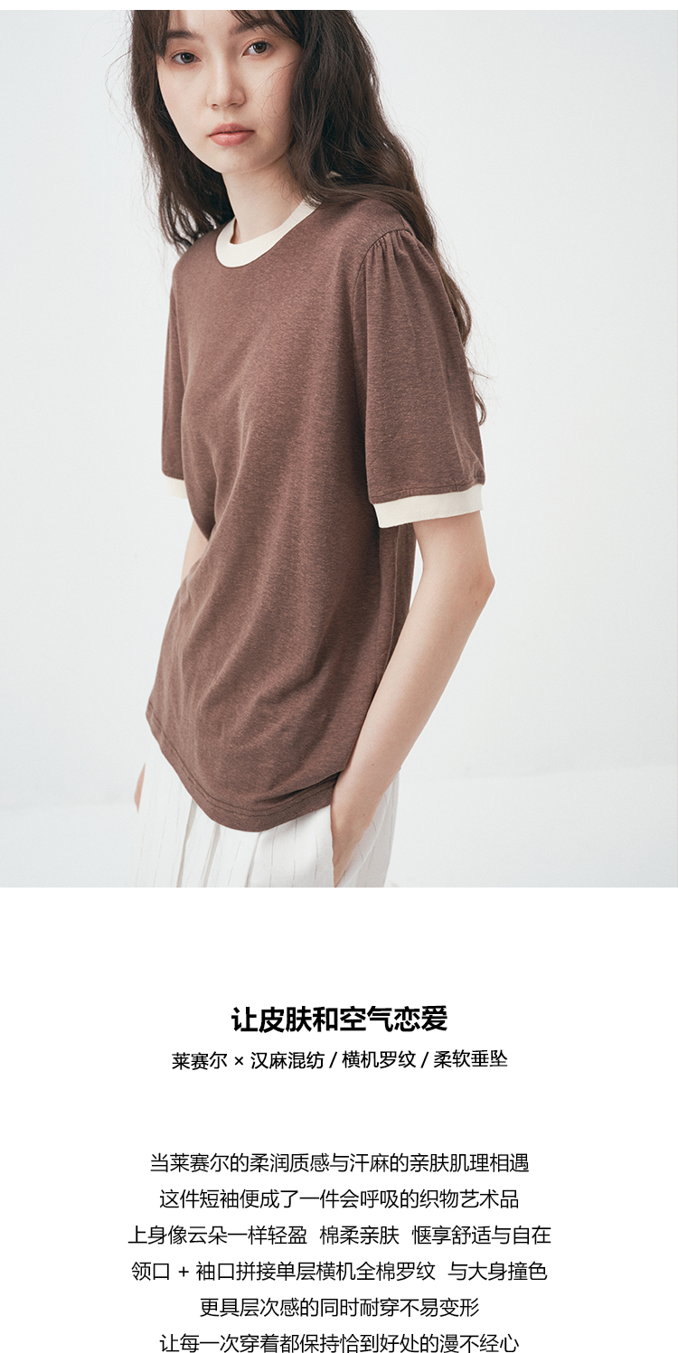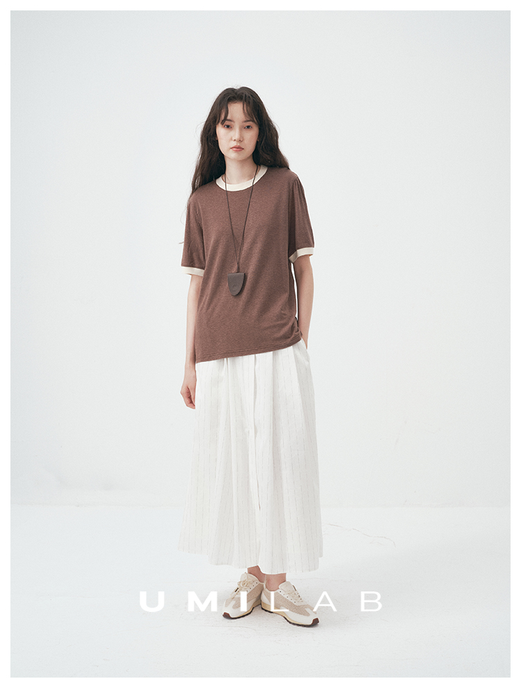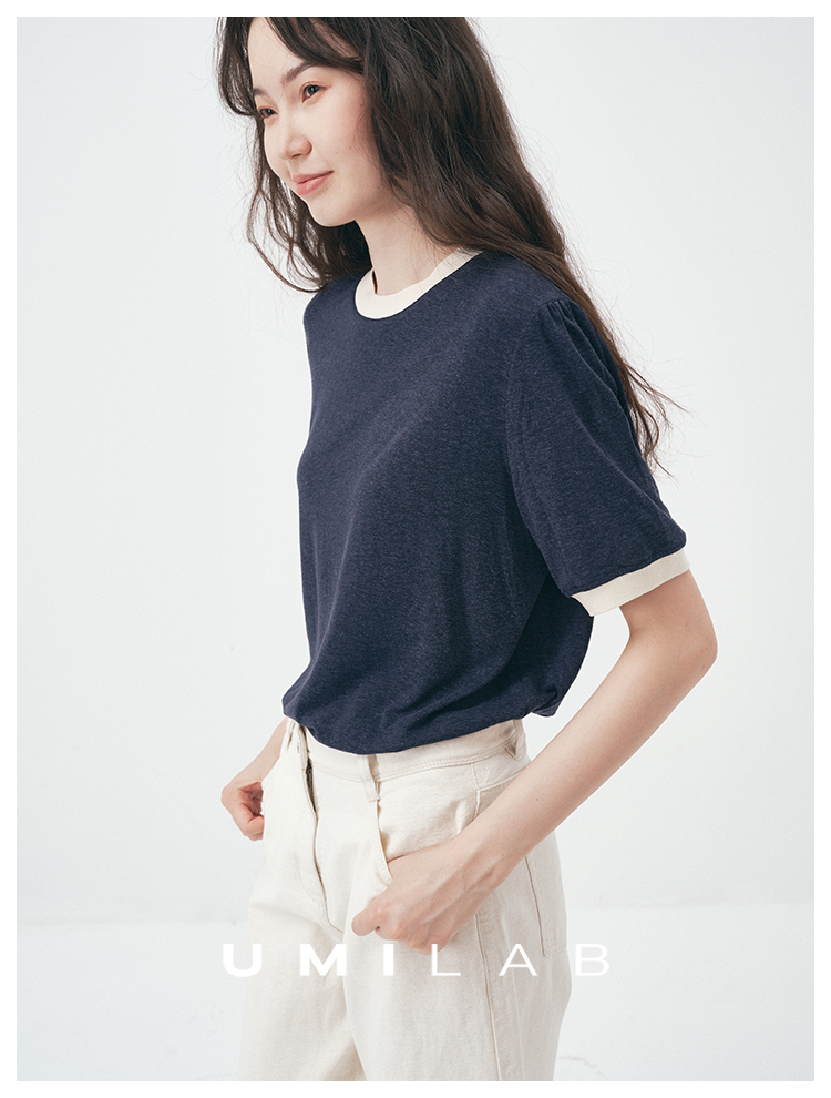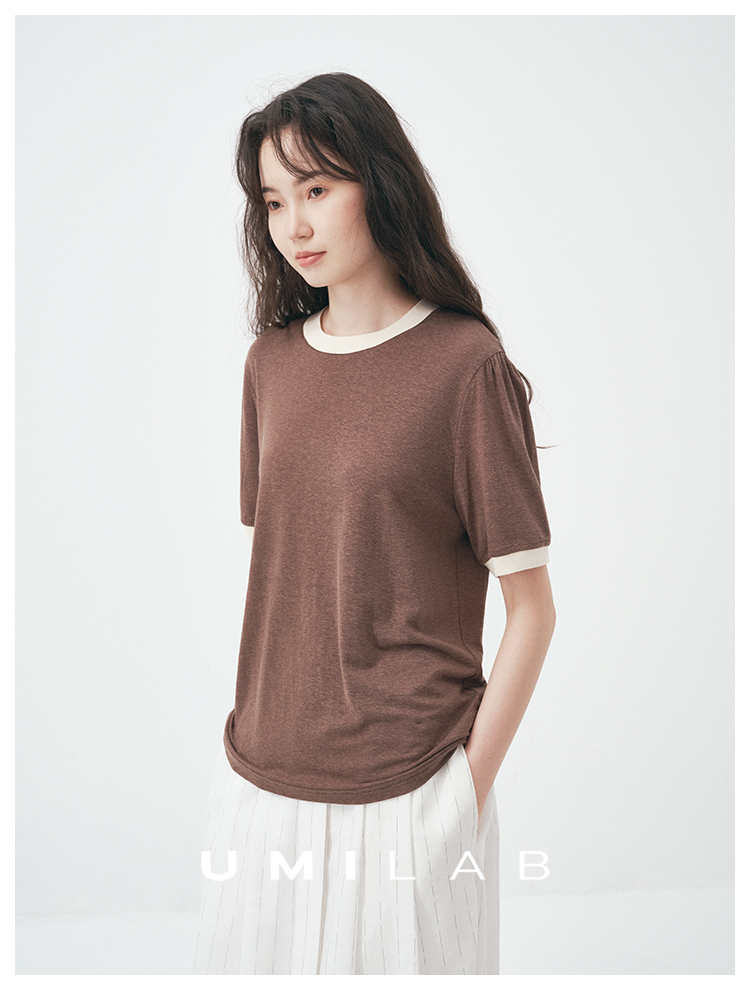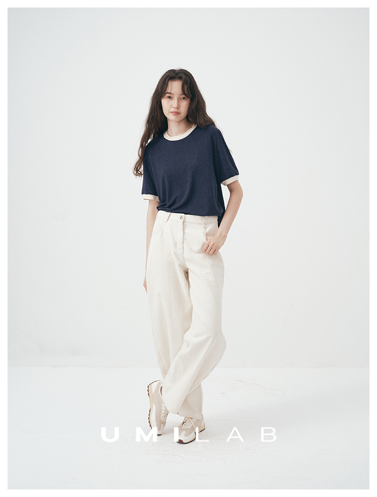 UMILAB|舒然*高质感天丝+汉麻复古雪花肌理撞色轻薄短袖T恤T755W
