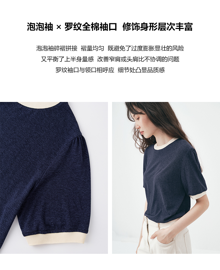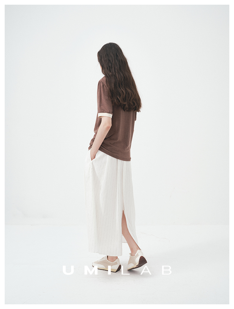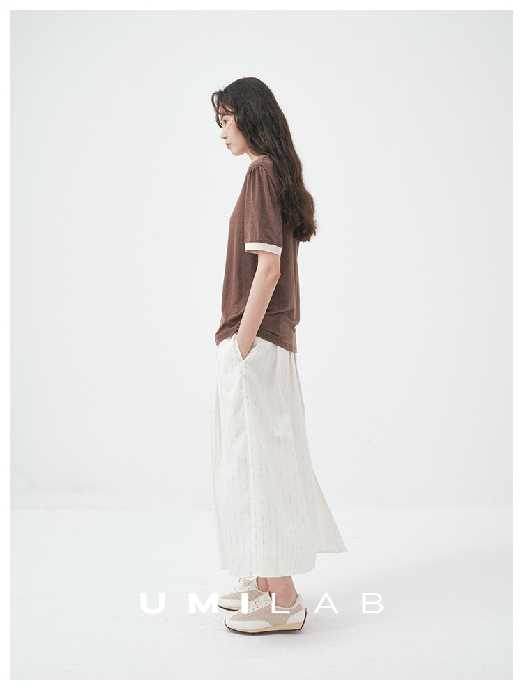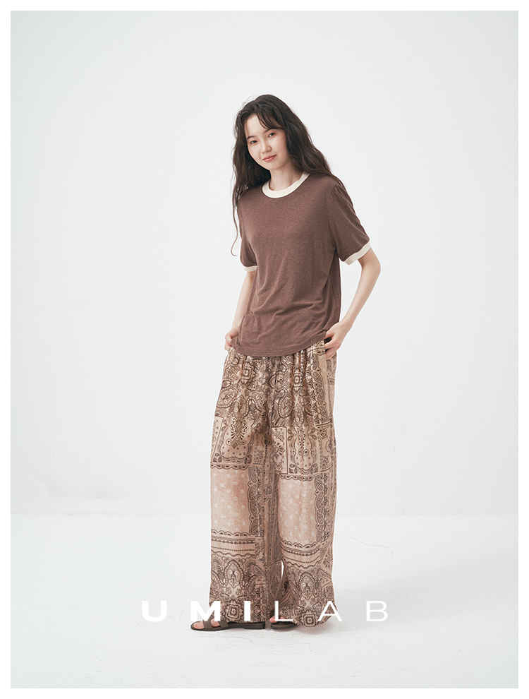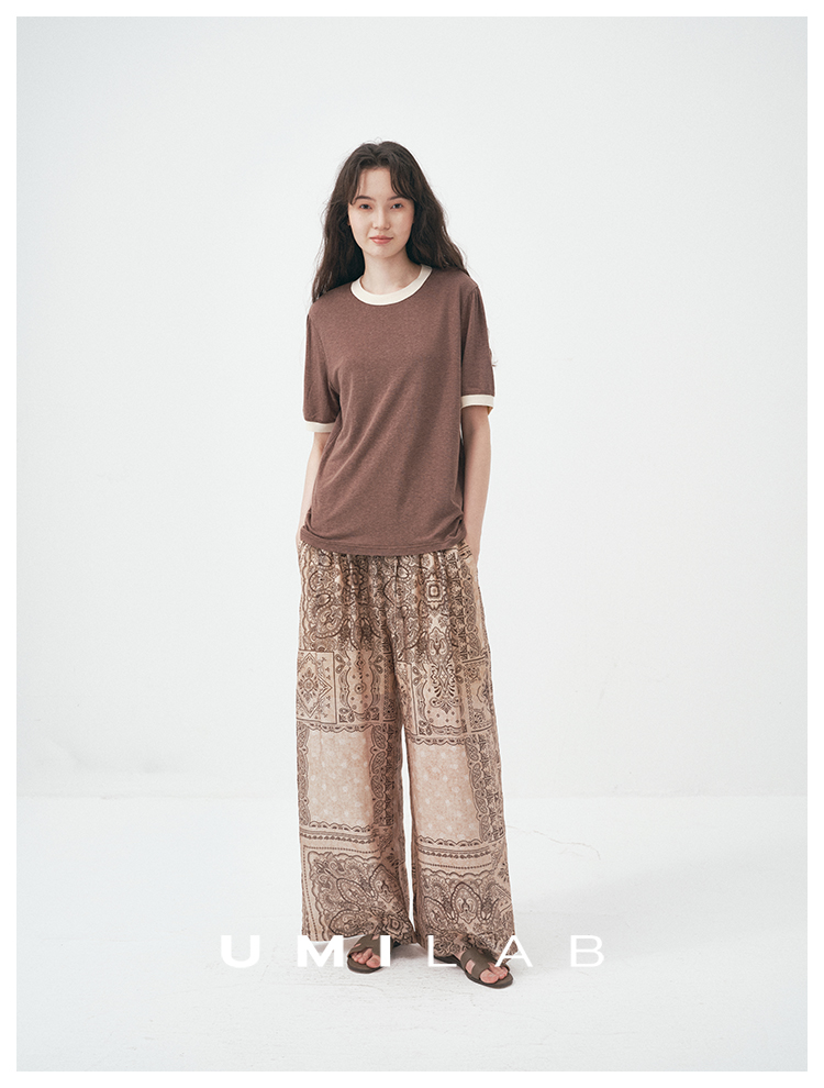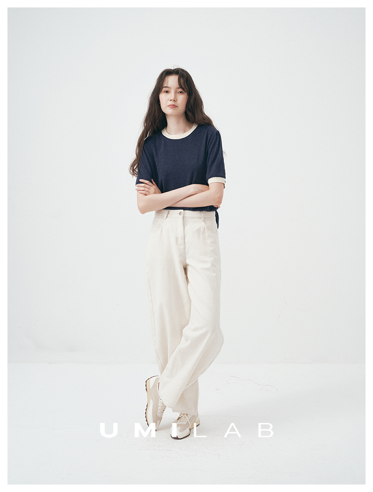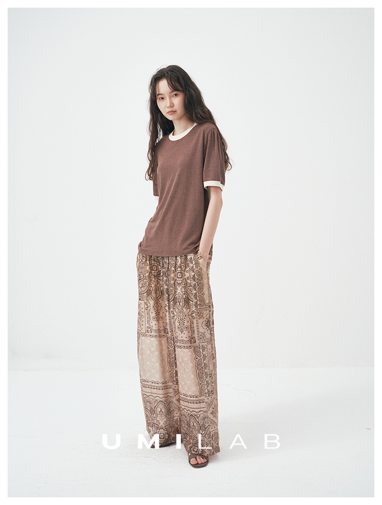 UMILAB|舒然*高质感天丝+汉麻复古雪花肌理撞色轻薄短袖T恤T755W