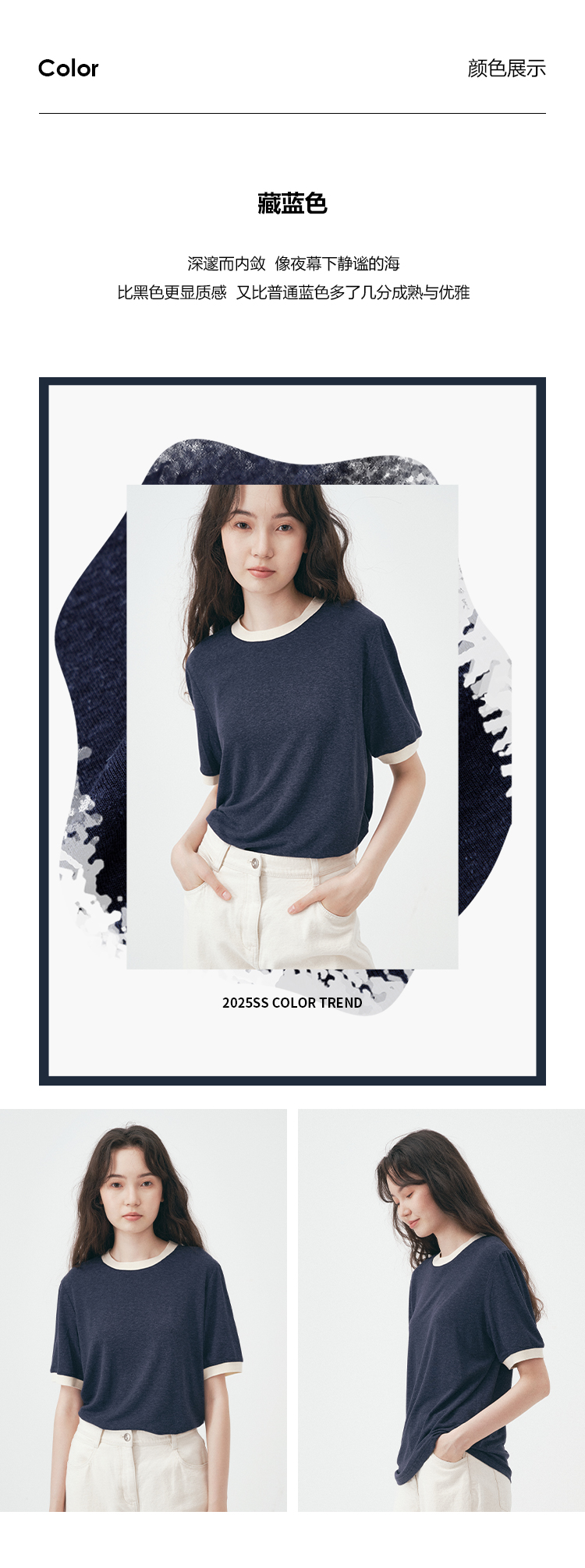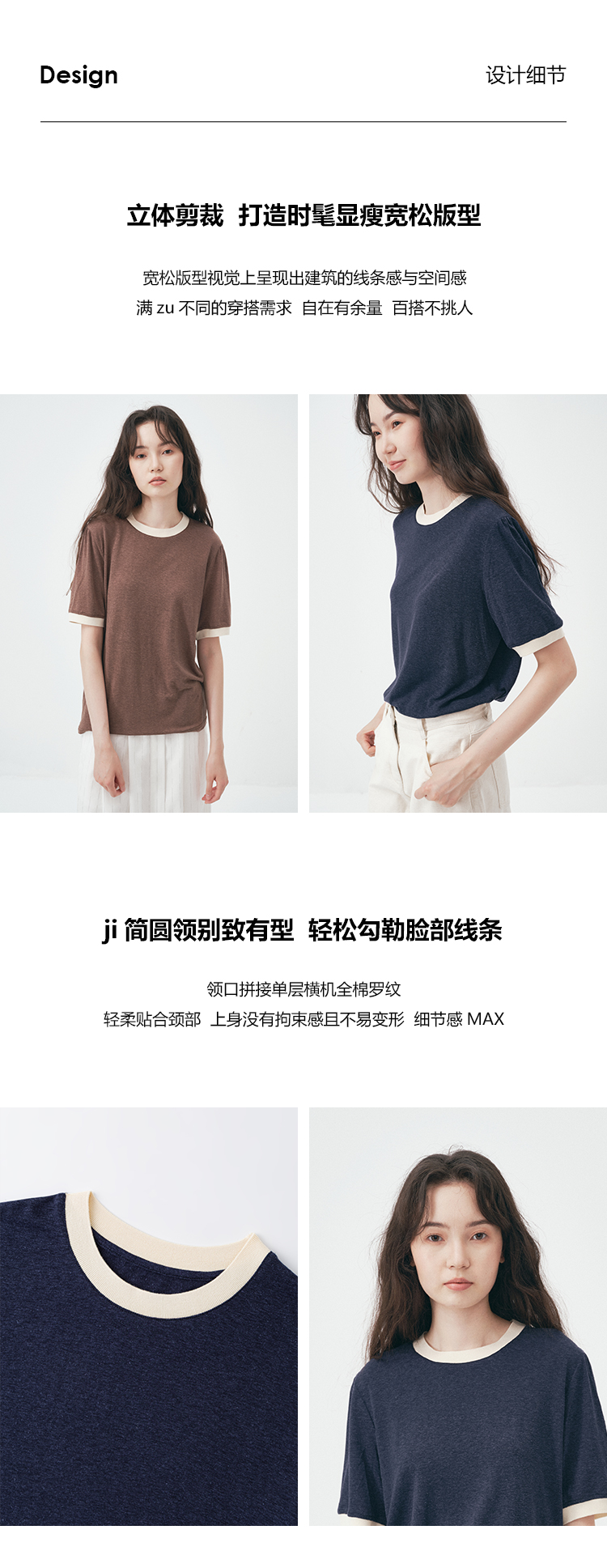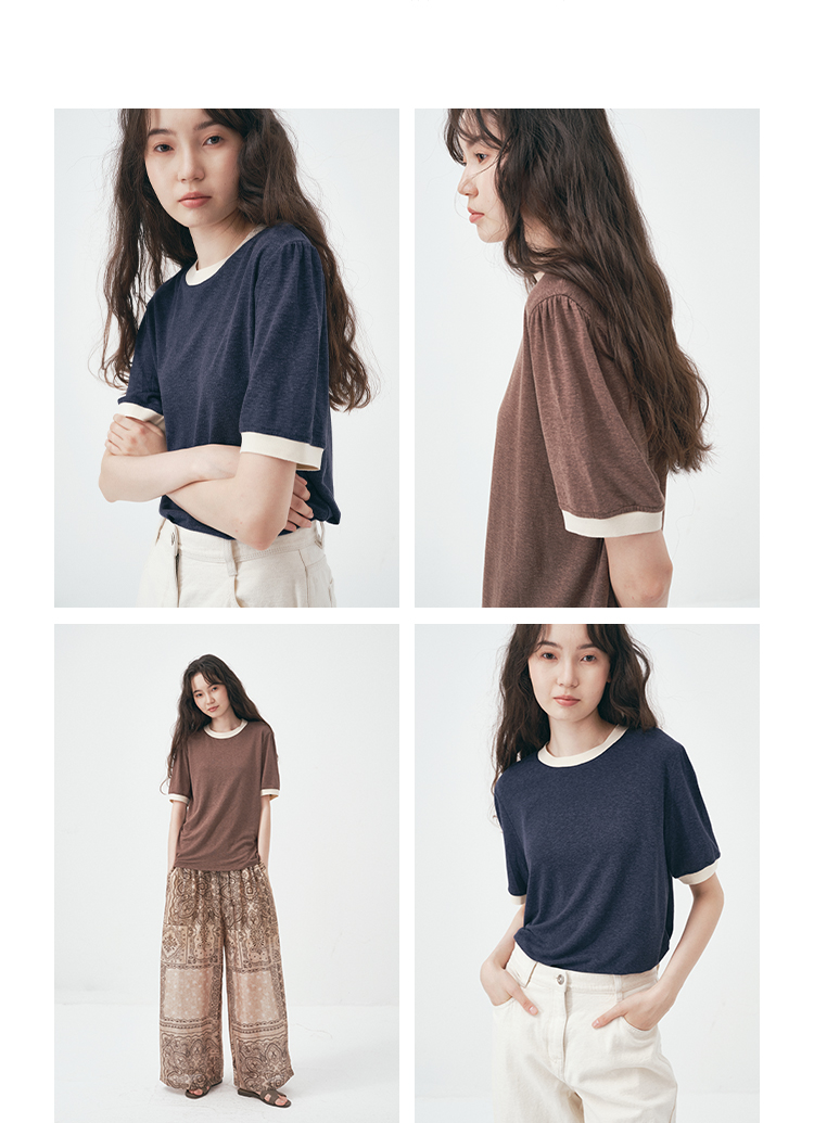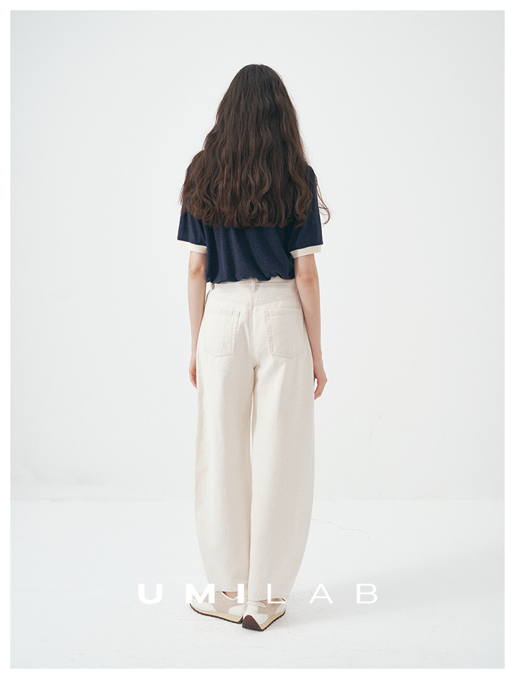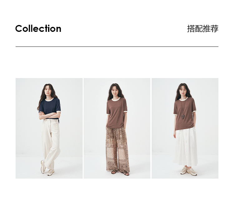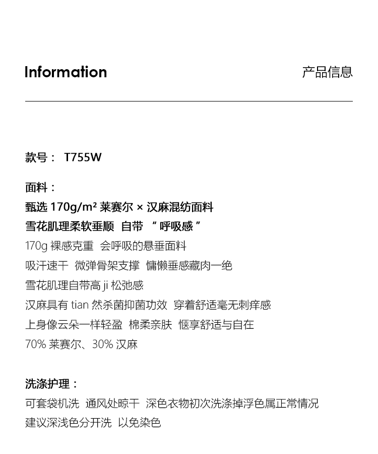 UMILAB|舒然*高质感天丝+汉麻复古雪花肌理撞色轻薄短袖T恤T755W