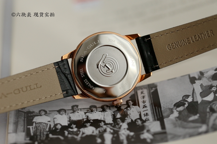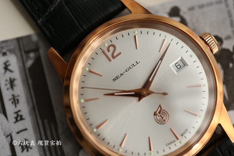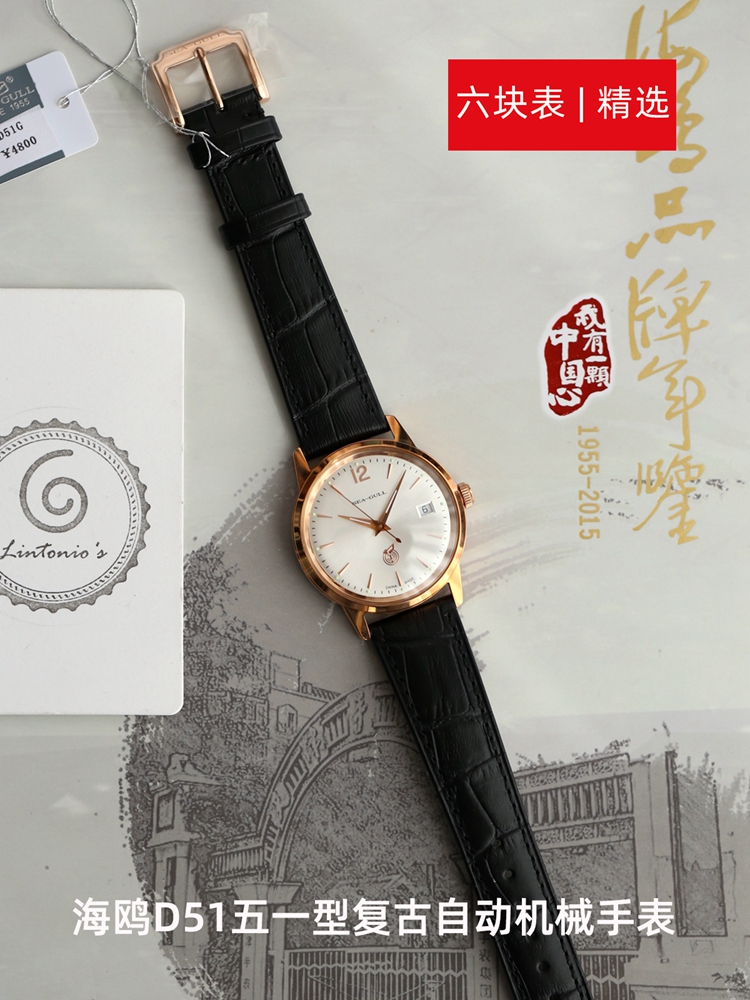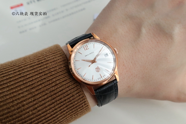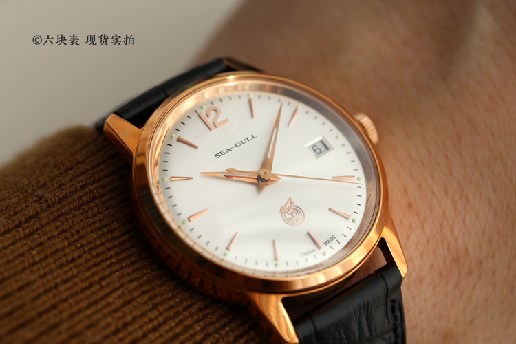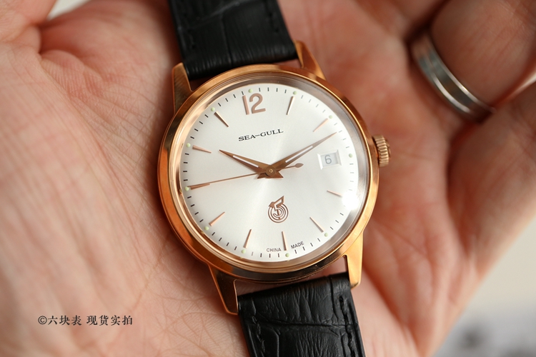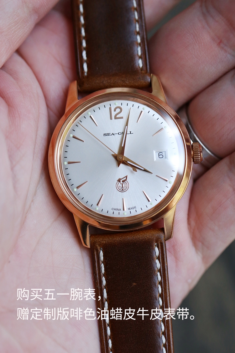 海鸥Seagull五一复古自动机械手表D51男士正装皮带金色壳36mm防水