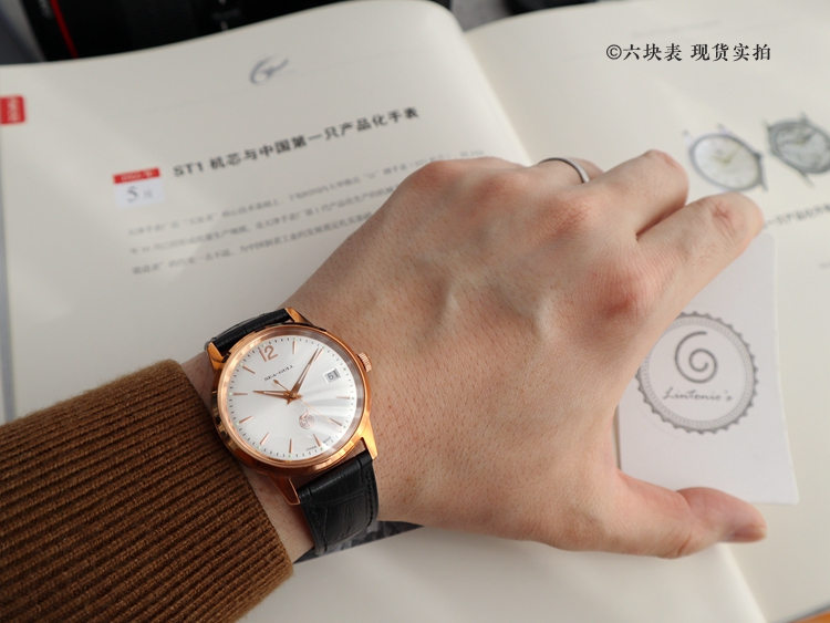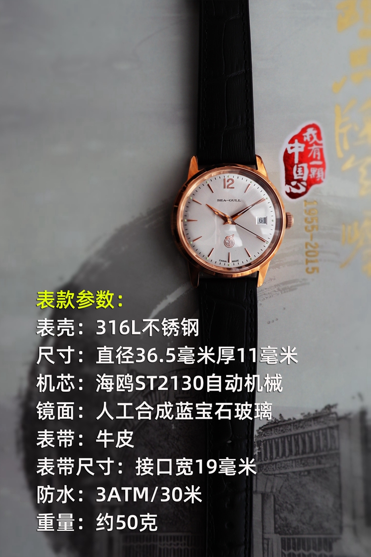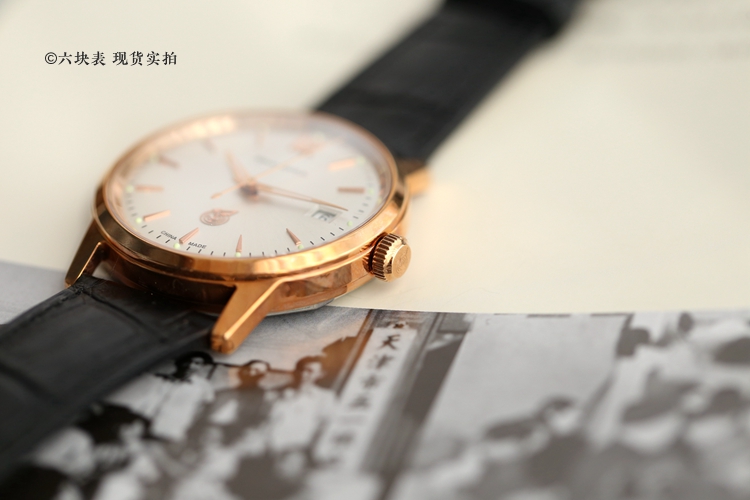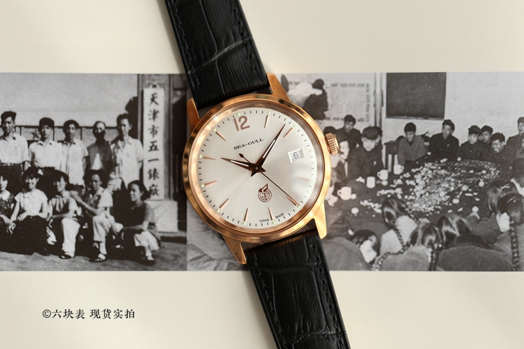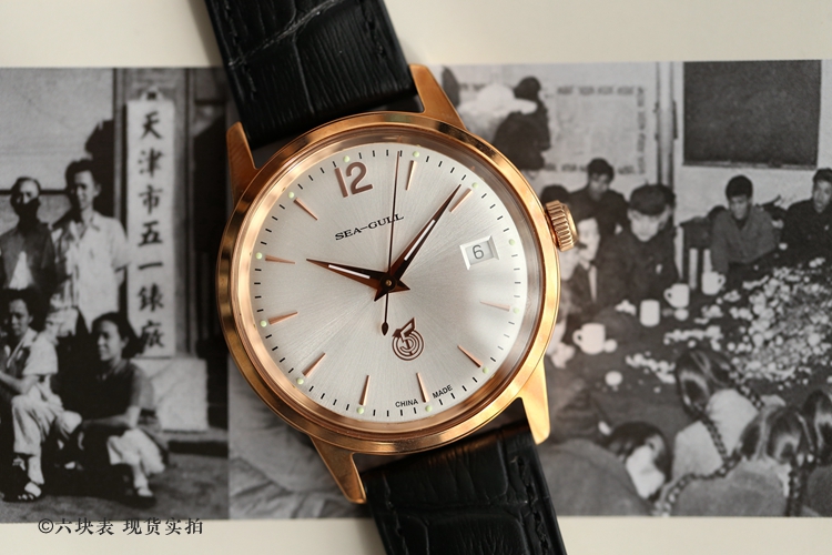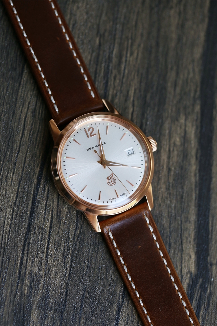 海鸥Seagull五一复古自动机械手表D51男士正装皮带金色壳36mm防水
