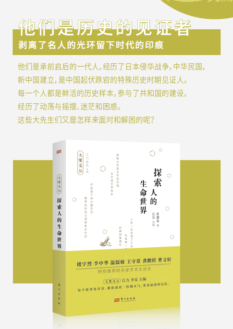 《大家文丛》系列丛书选取了汤一介、乐黛云、汪曾祺、张世英、厉以宁、林非六位先生的短文精品,成大家之文集,他们都是这个社会的良知和守望者,全景式展现大家之学术生活史,展现了大师的风采和精神境界,对传承文化、传播思想做出贡献。