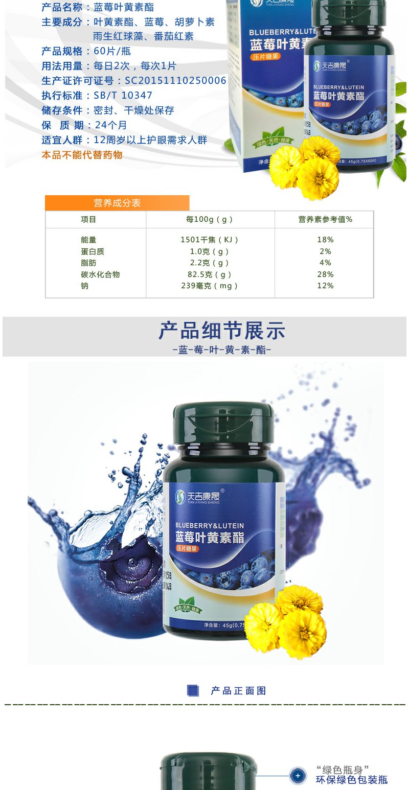 天吉康晟 蓝莓叶黄素酯 45g(0.75g×60片)
