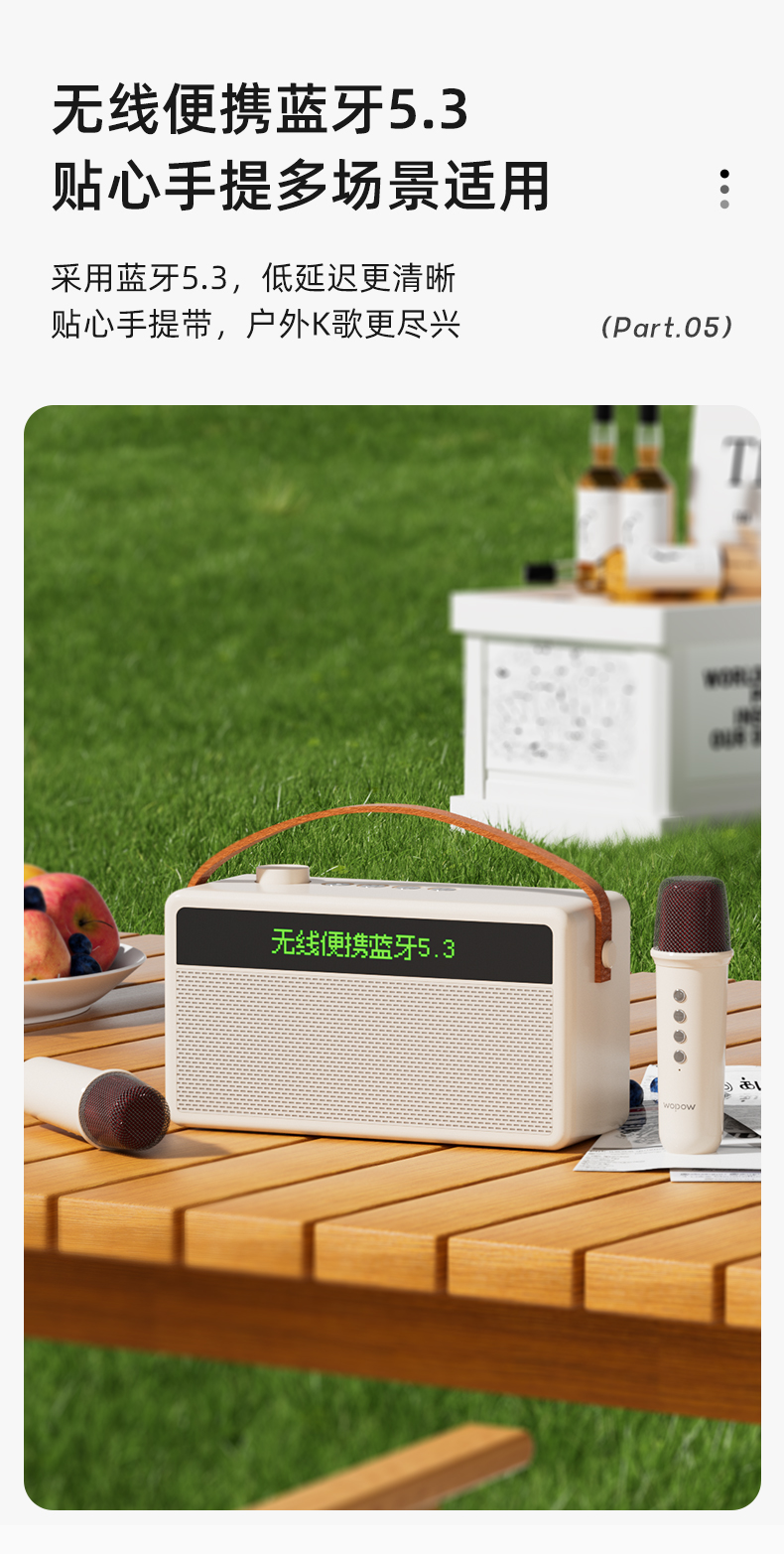 [屁侠推荐]华为合作代工厂 沃品便携K歌蓝牙音箱音响AP09 自带双麦克风 显示歌词