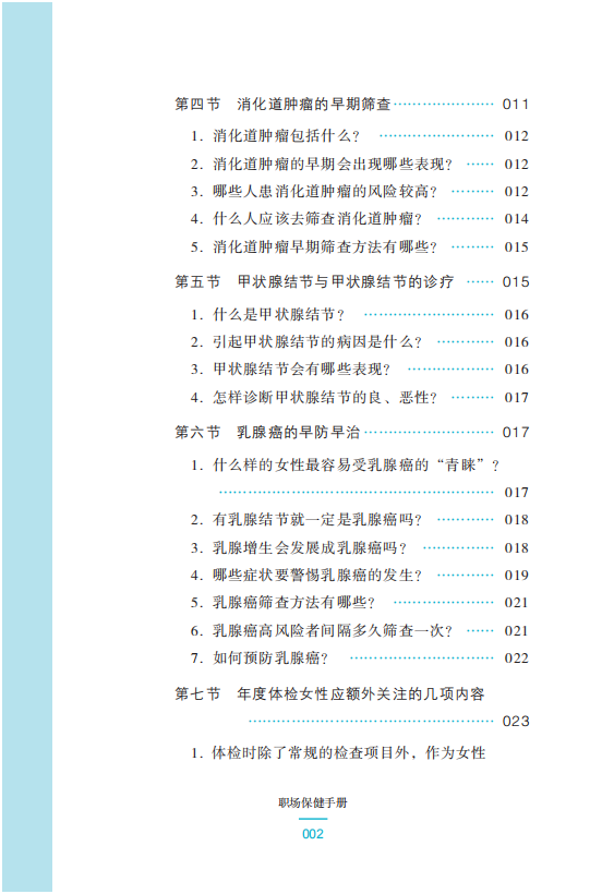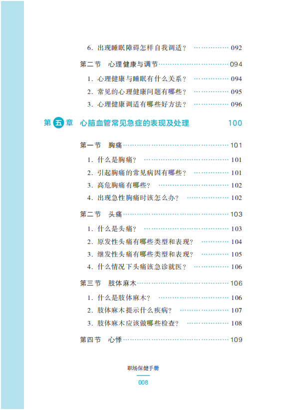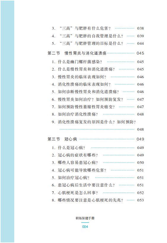 ★ 内容实用:本书涵盖疾病预防、运动健康、慢性疾病管理、 中医保健、日常急救等,内容全面、重点突出。力求以深入浅出、通俗易懂的形式传播卫生健康知识,特别针对一些生活节奏快、工作压力大、容易忽视个人健康管理的职场人群特点,着重介绍了运动健康、睡眠调节、心理健康等内容。