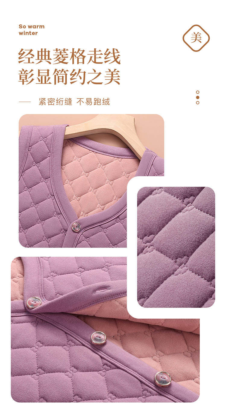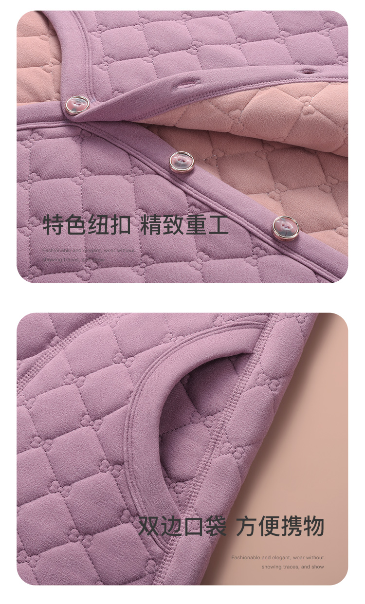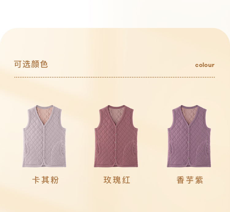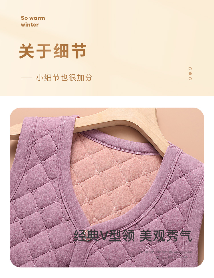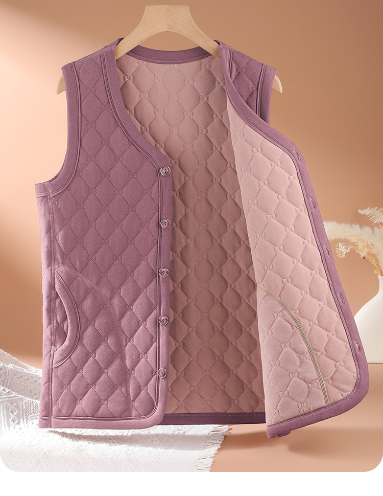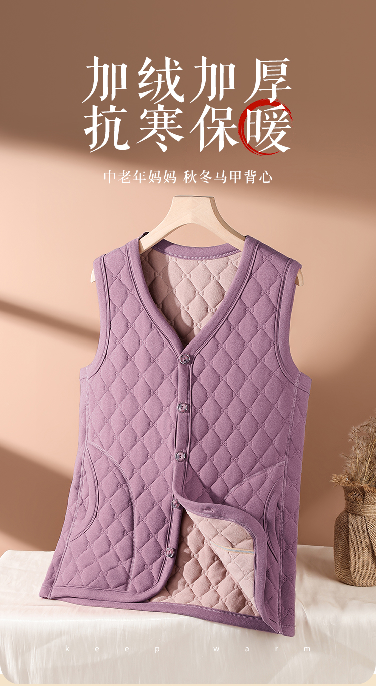 保暖舒适菱格纹开衫马甲中老年妈妈内搭含绵羊毛无袖外穿保暖背心女士开衫马甲
