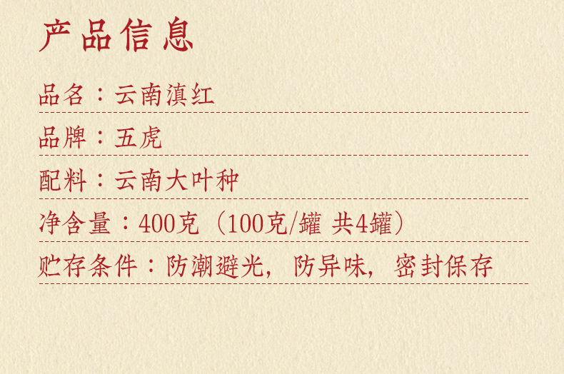【年货礼盒】茶叶 滇红 红茶 云南红茶 茶饮 年货茶礼 五虎 400g