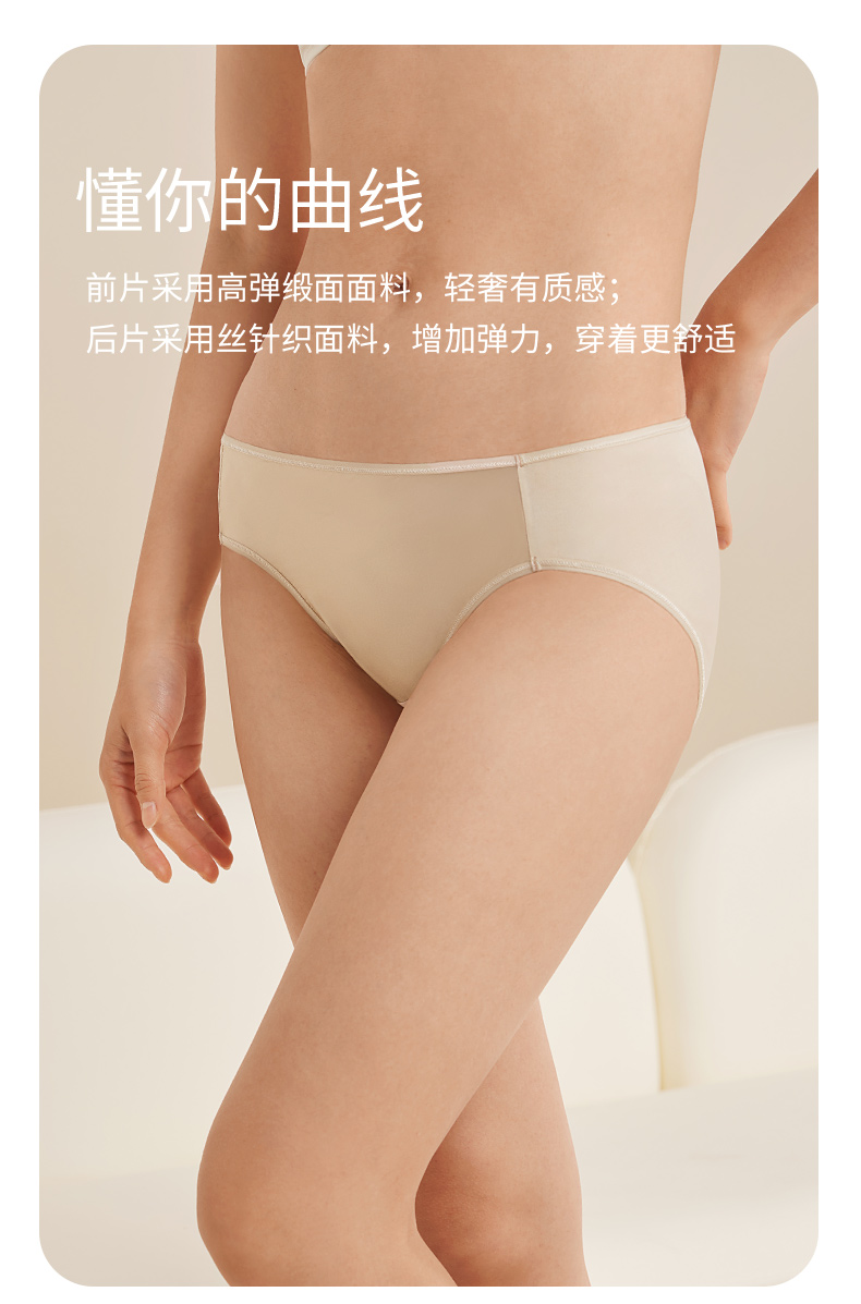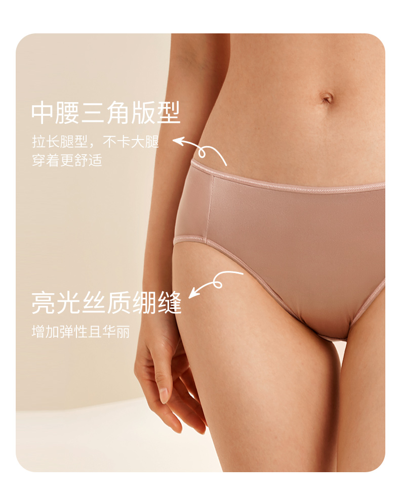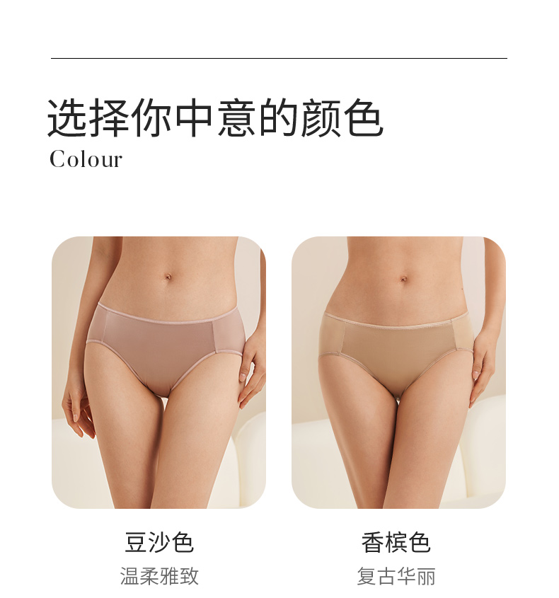 金三塔桑蚕丝裸感内裤女微弹缎面舒适透气真丝内裤内衣中腰三角裤 (私密物品不支持退换货)(限价款) NZFEA201
