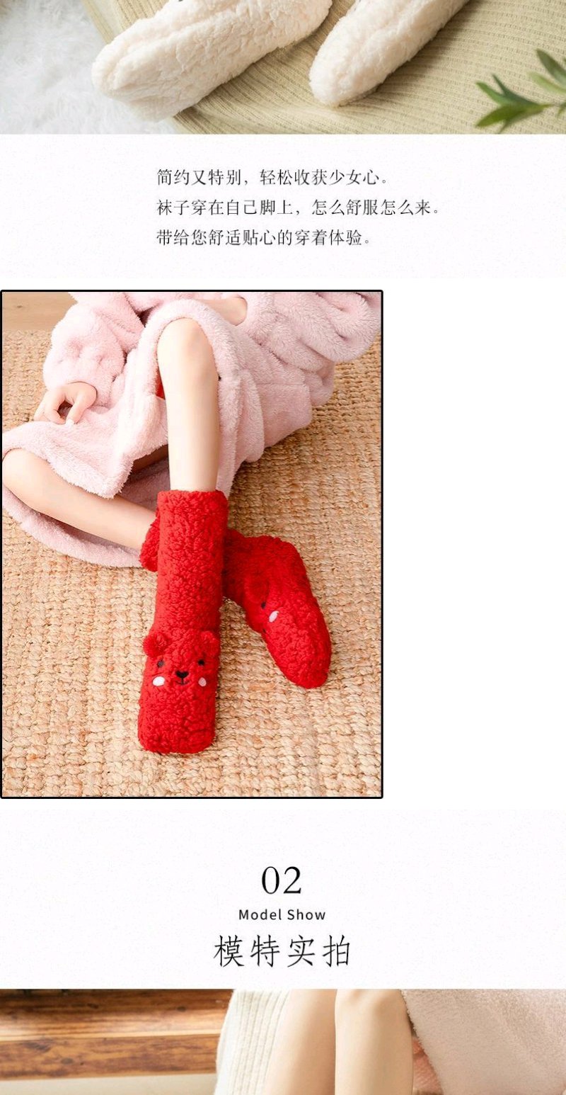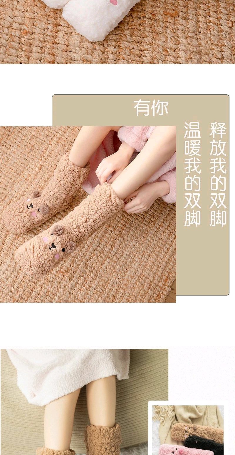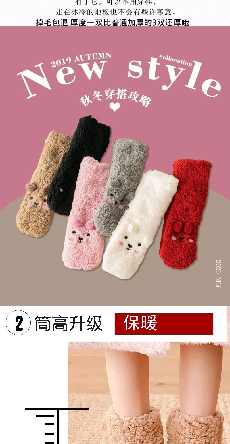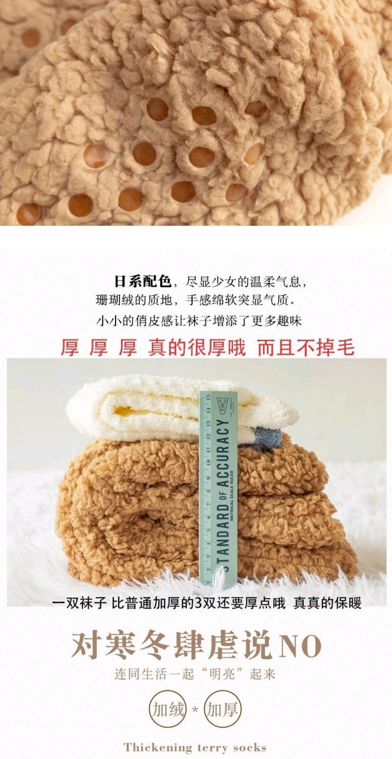 地板袜子珊瑚绒暖脚加绒神器睡眠袜小熊羊羔绒秋冬加厚保暖袜男女