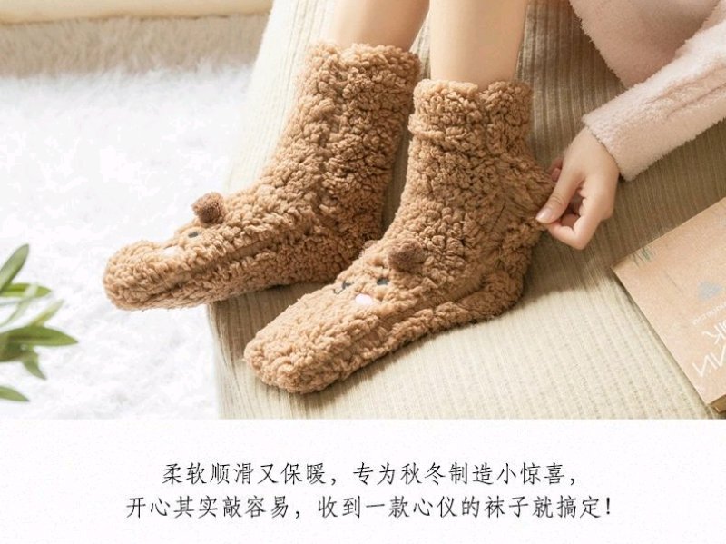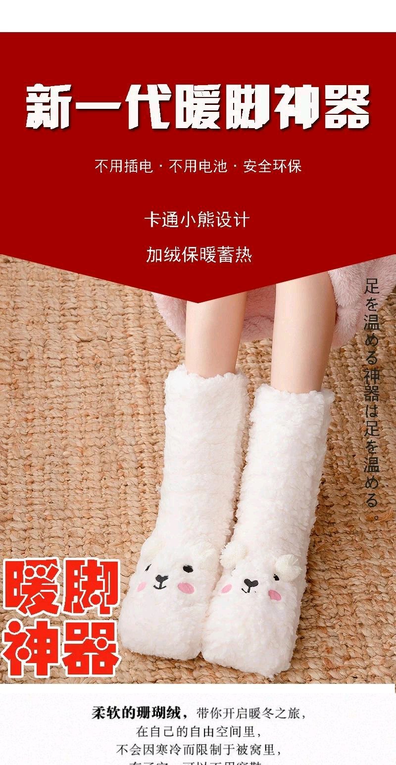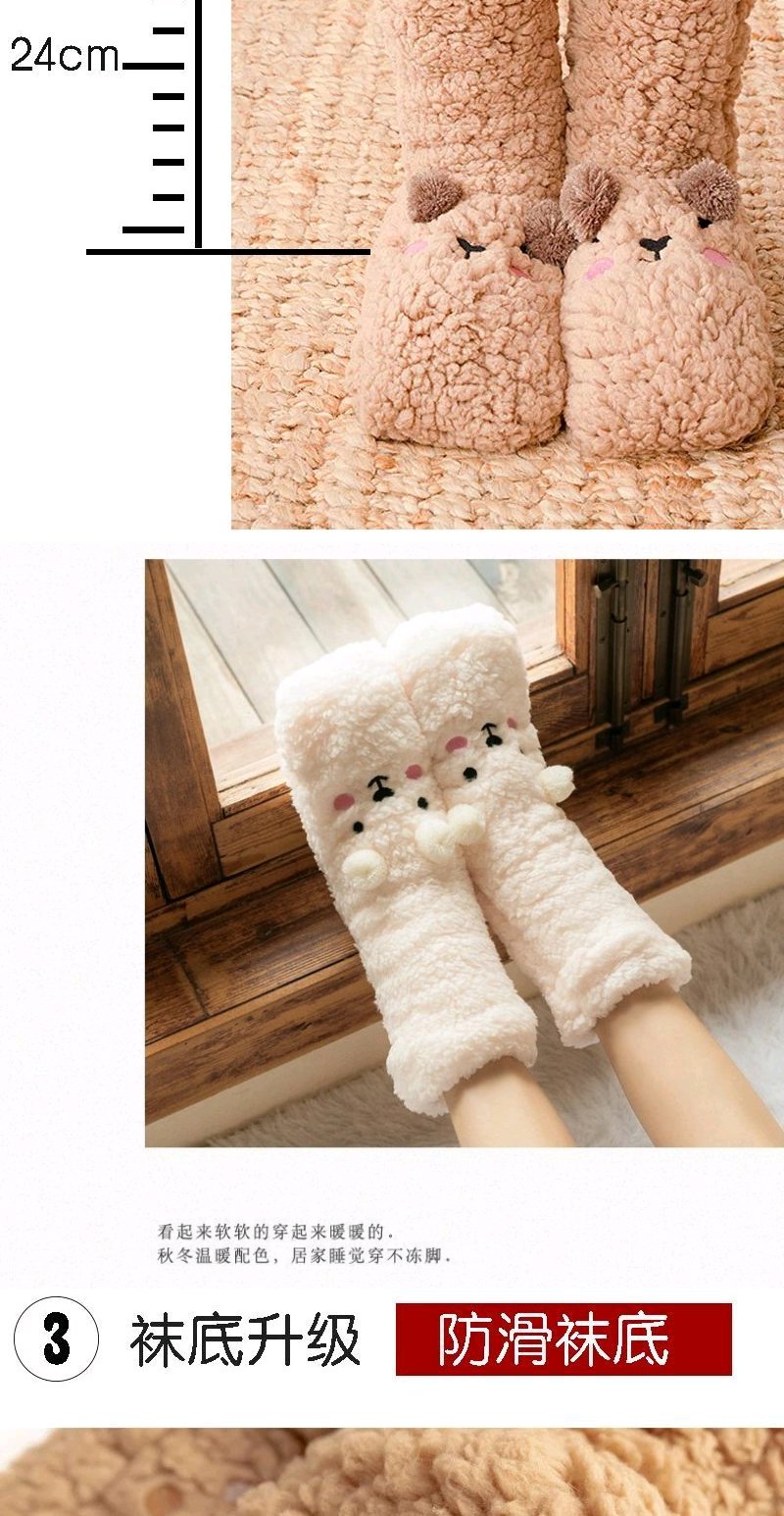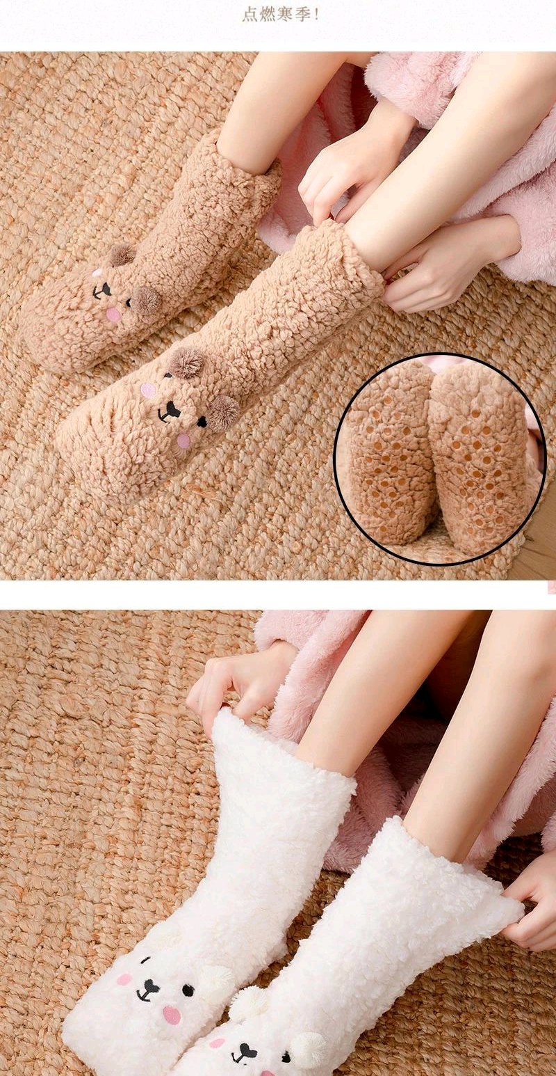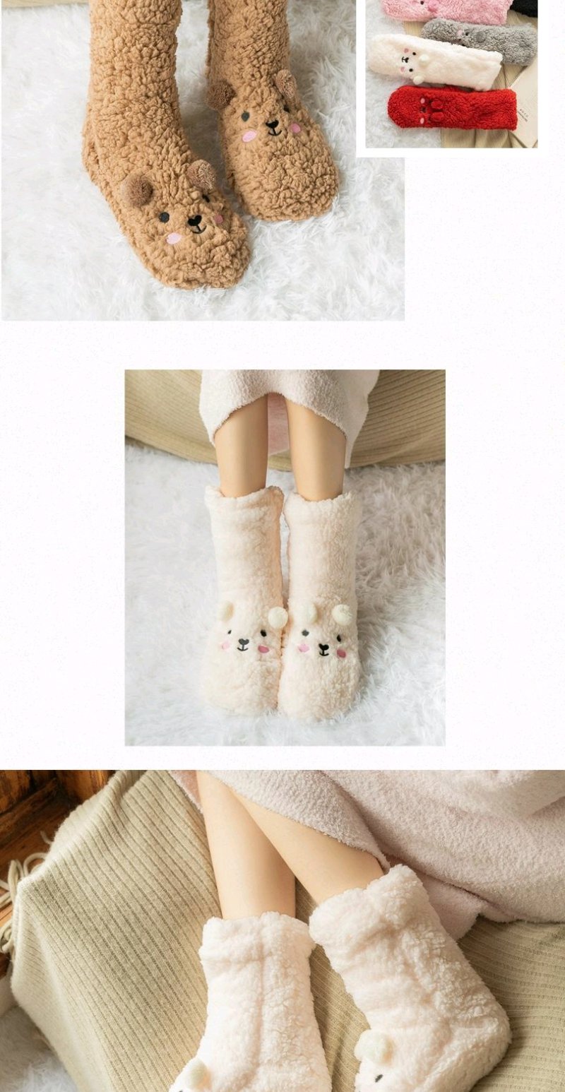地板袜子珊瑚绒暖脚加绒神器睡眠袜小熊羊羔绒秋冬加厚保暖袜男女