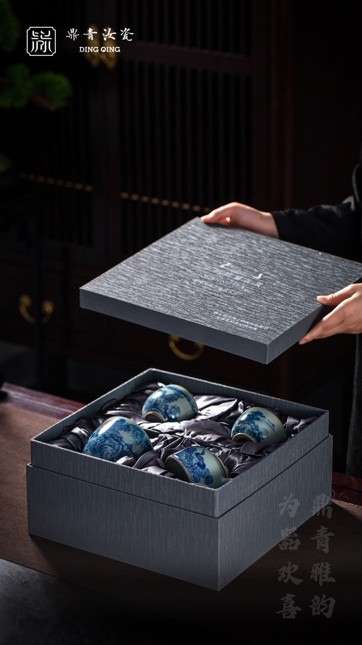 问鼎汝瓷鼎峰系列天青癸卯宝相盖碗对杯套组