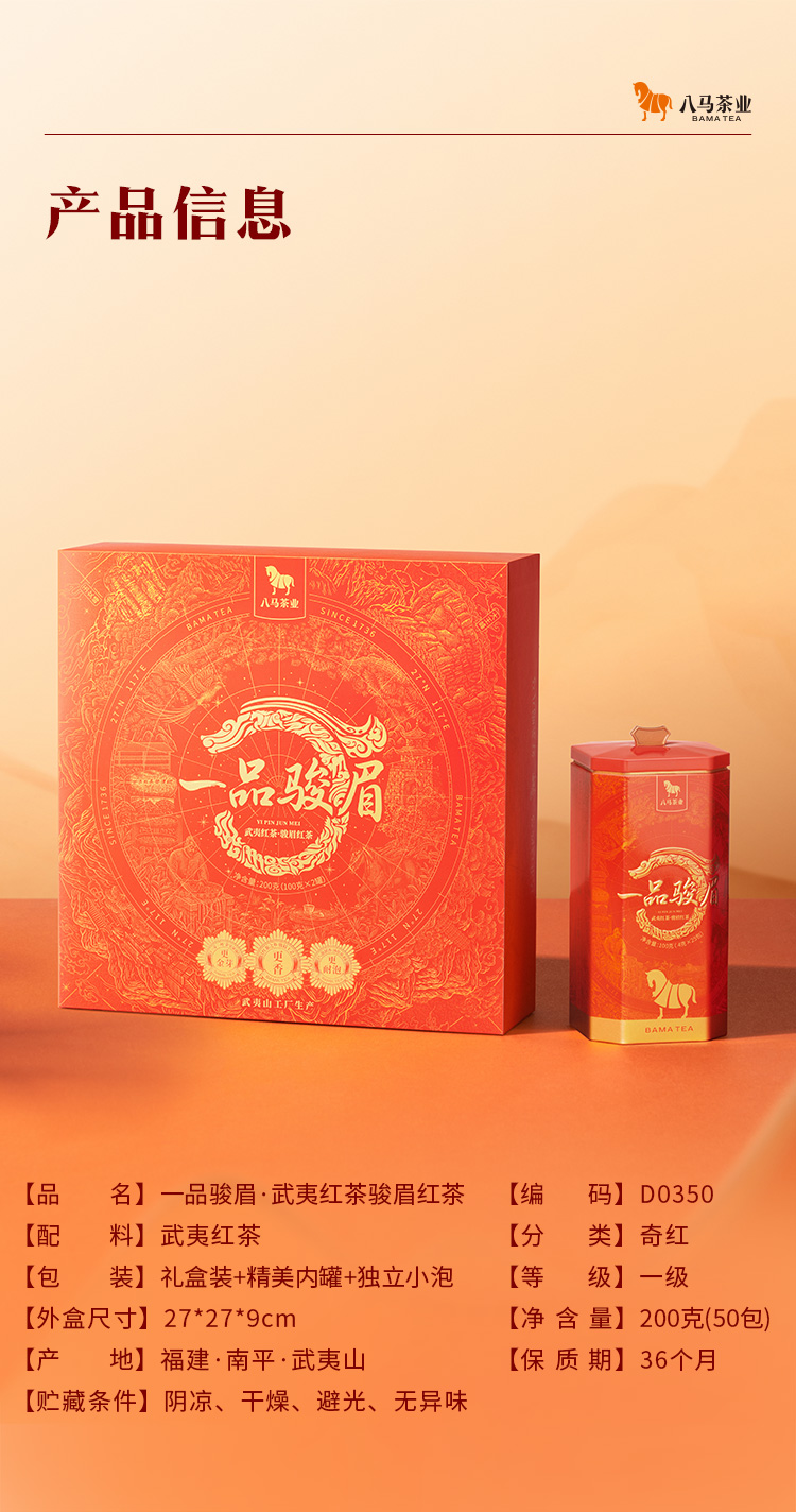八马茶业 武夷红茶骏眉红茶礼盒装