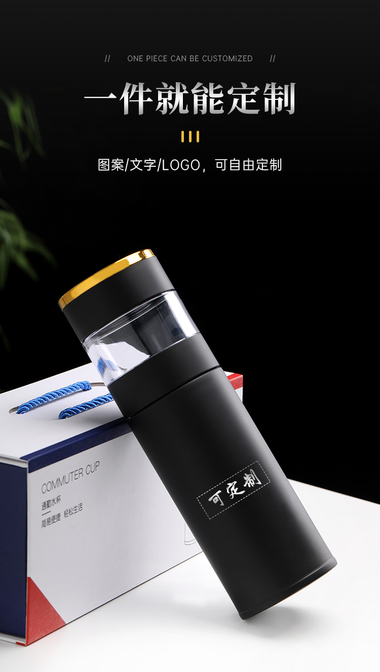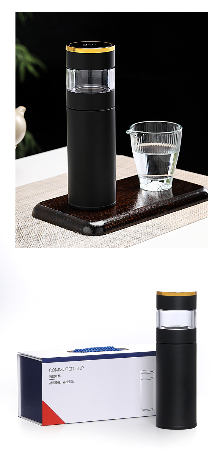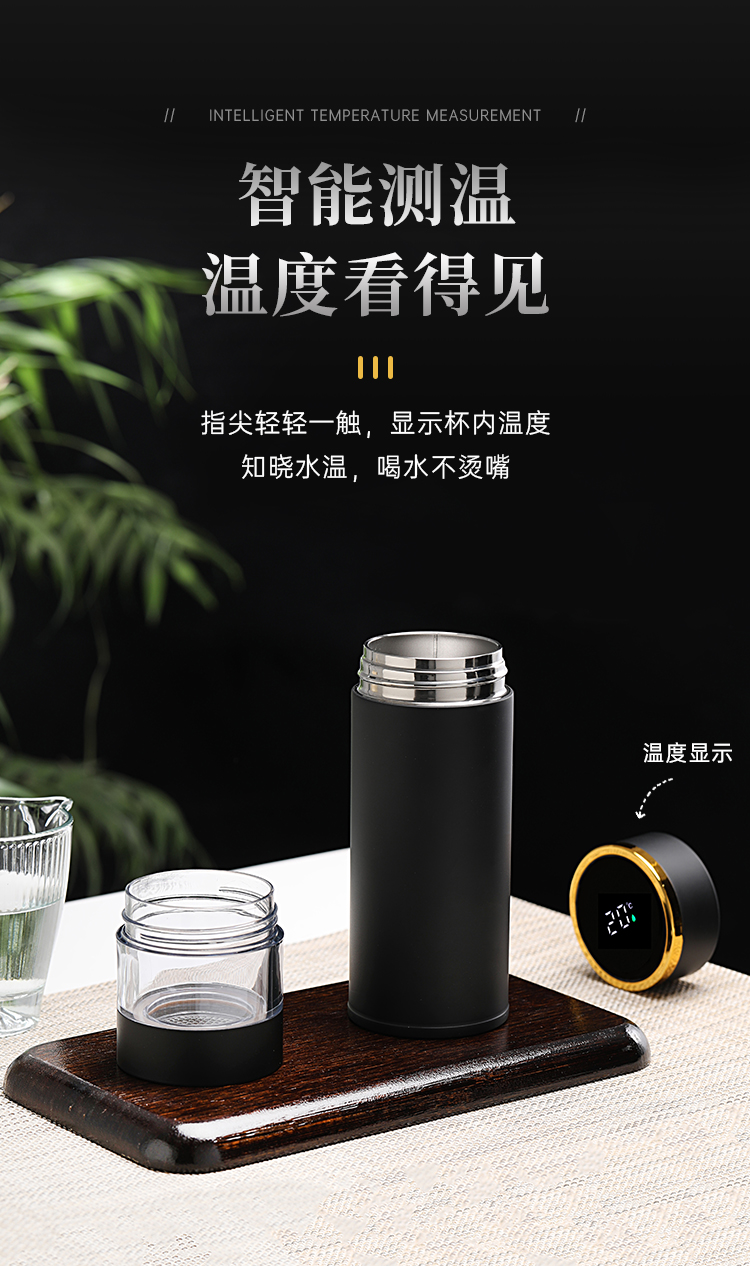 【可定制茶水分离杯】室内办公泡茶水杯 大容量触盖显温保温杯玻璃杯子