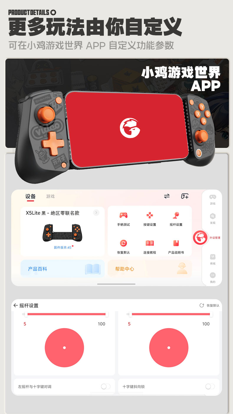 盖世小鸡X5lite/X5s绝区零联名款手机拉伸手柄ipad平板苹果安卓外设空洞骑士丝之歌燕云三角洲行动吃鸡可散热