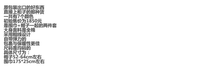围巾+帽子一起,原包装两件套。小标刺绣加厚全棉围巾套装C112260