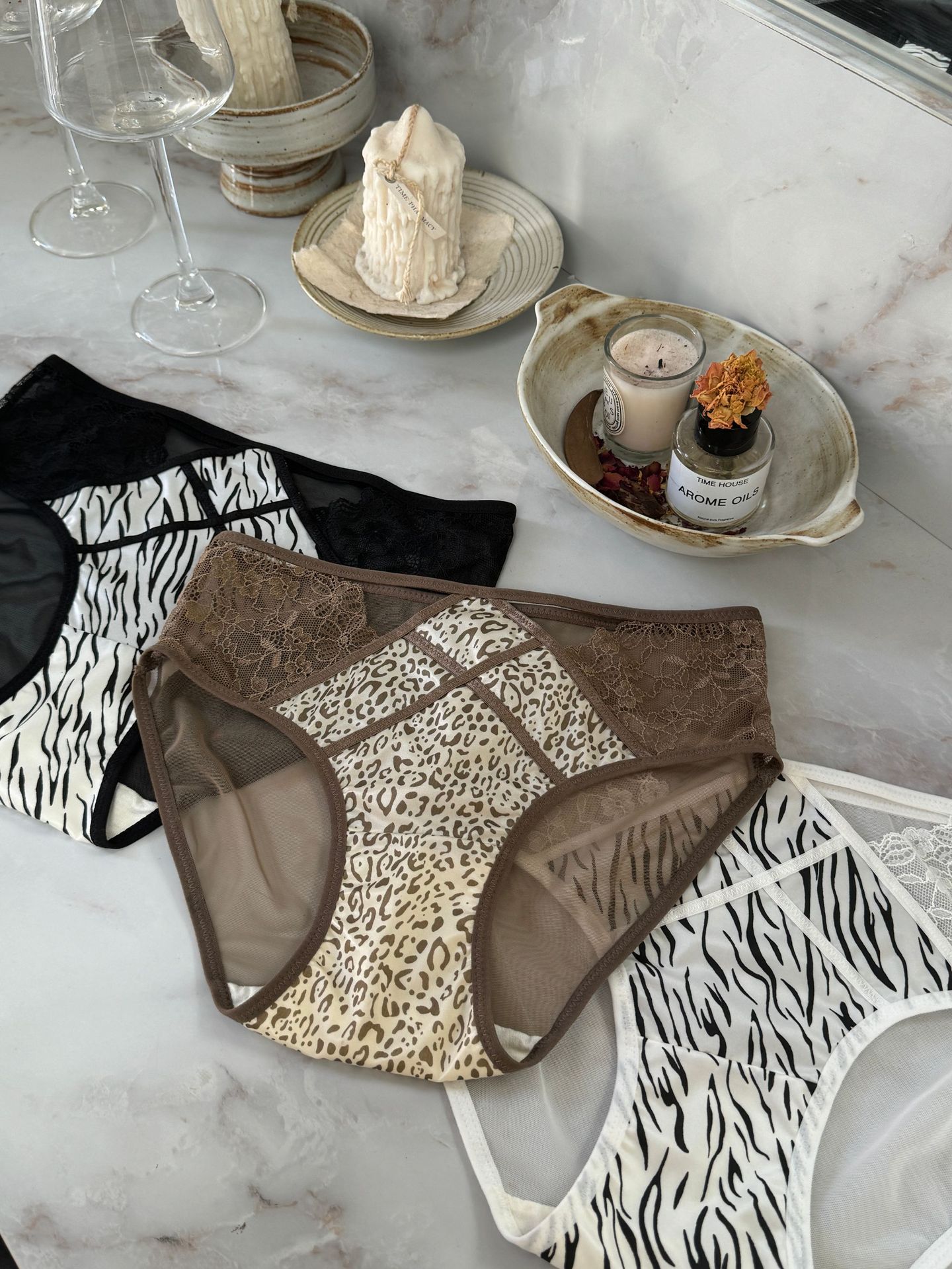 【超火辣❗️3条装🔥日系豹纹内裤】野性豹纹邂逅精致蕾丝,交叉镂空设计尽显迷人曲线,网纱透视氛围感拉满。柔软面料亲肤透气,蕾丝内裤女镂空网纱拼接斑马纹中腰三角短裤QQ