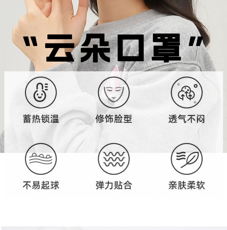 云朵保暖口罩冬季保暖女高颜值骑行防风防寒加绒护耳二合一面罩