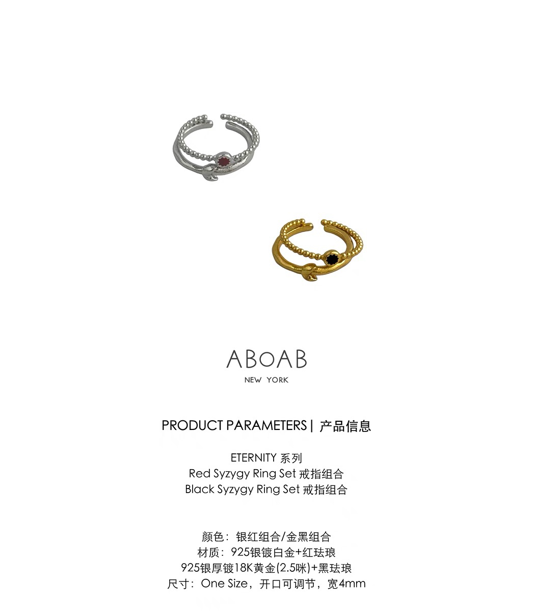 ABOAB|SYZYGY Ring SET [ 珐琅戒指 银红enamel / 金黑enamel ]【ETERNITY】