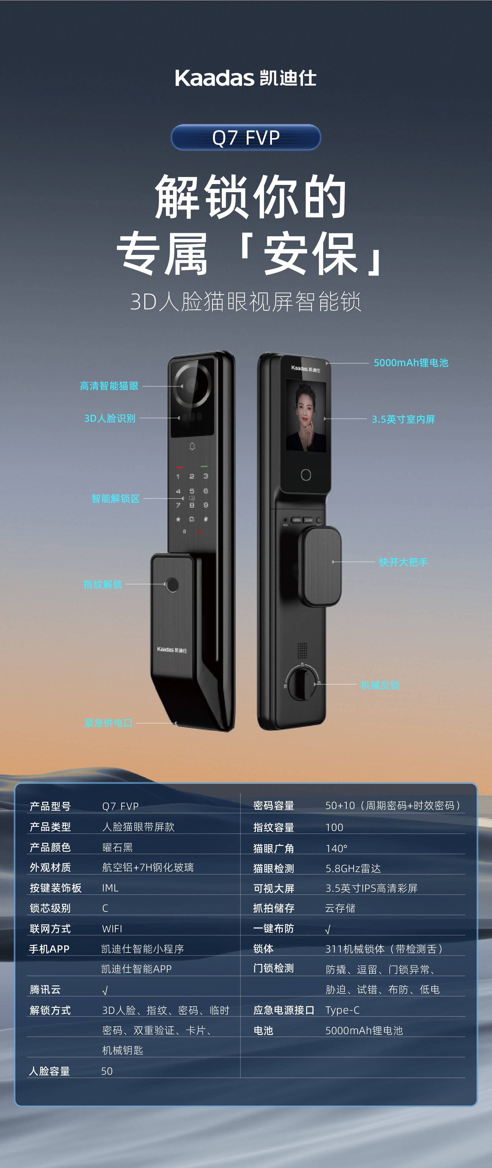 凯迪仕智能门锁Q7-FVP