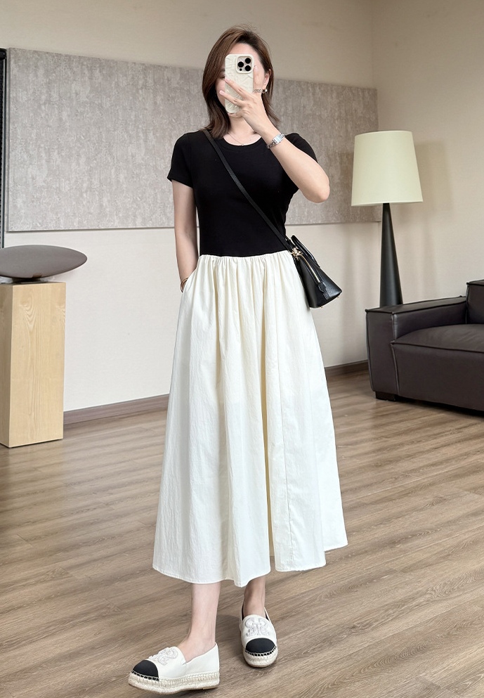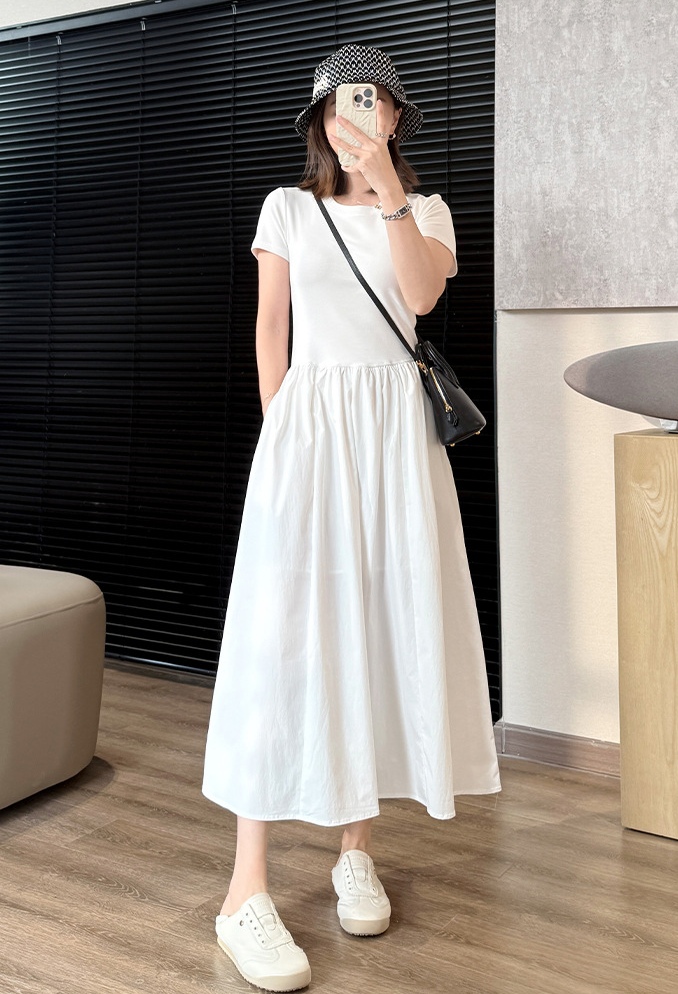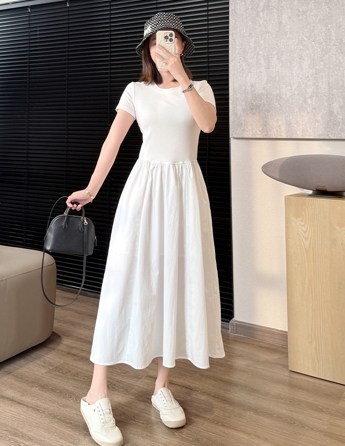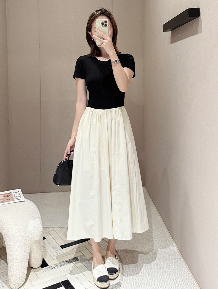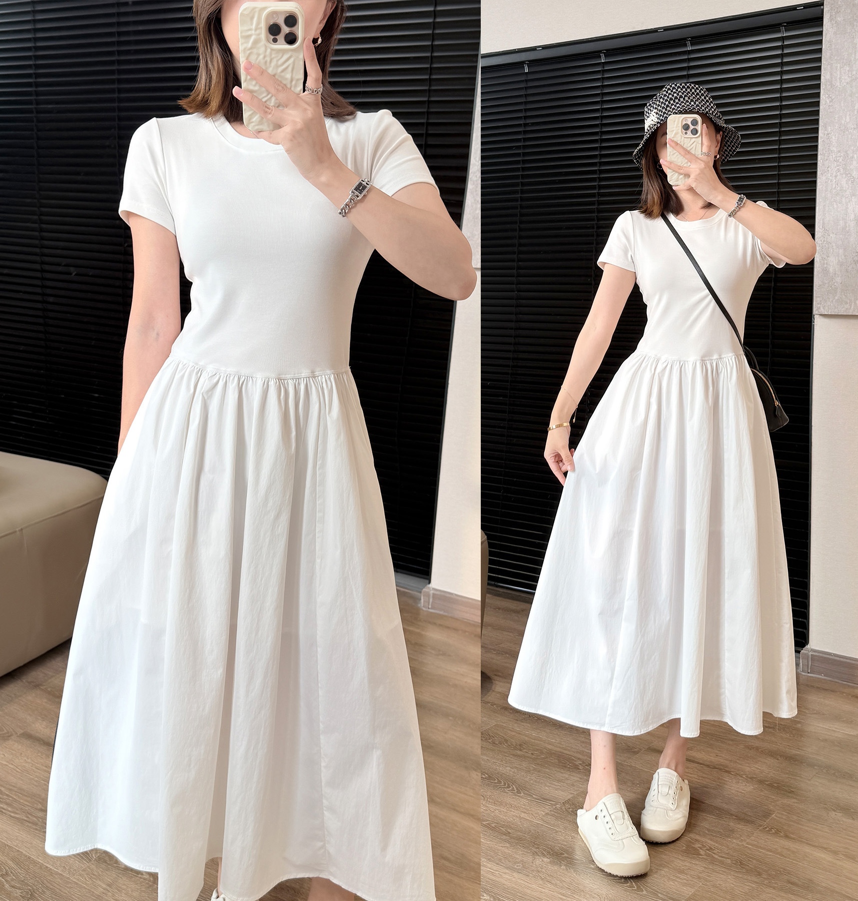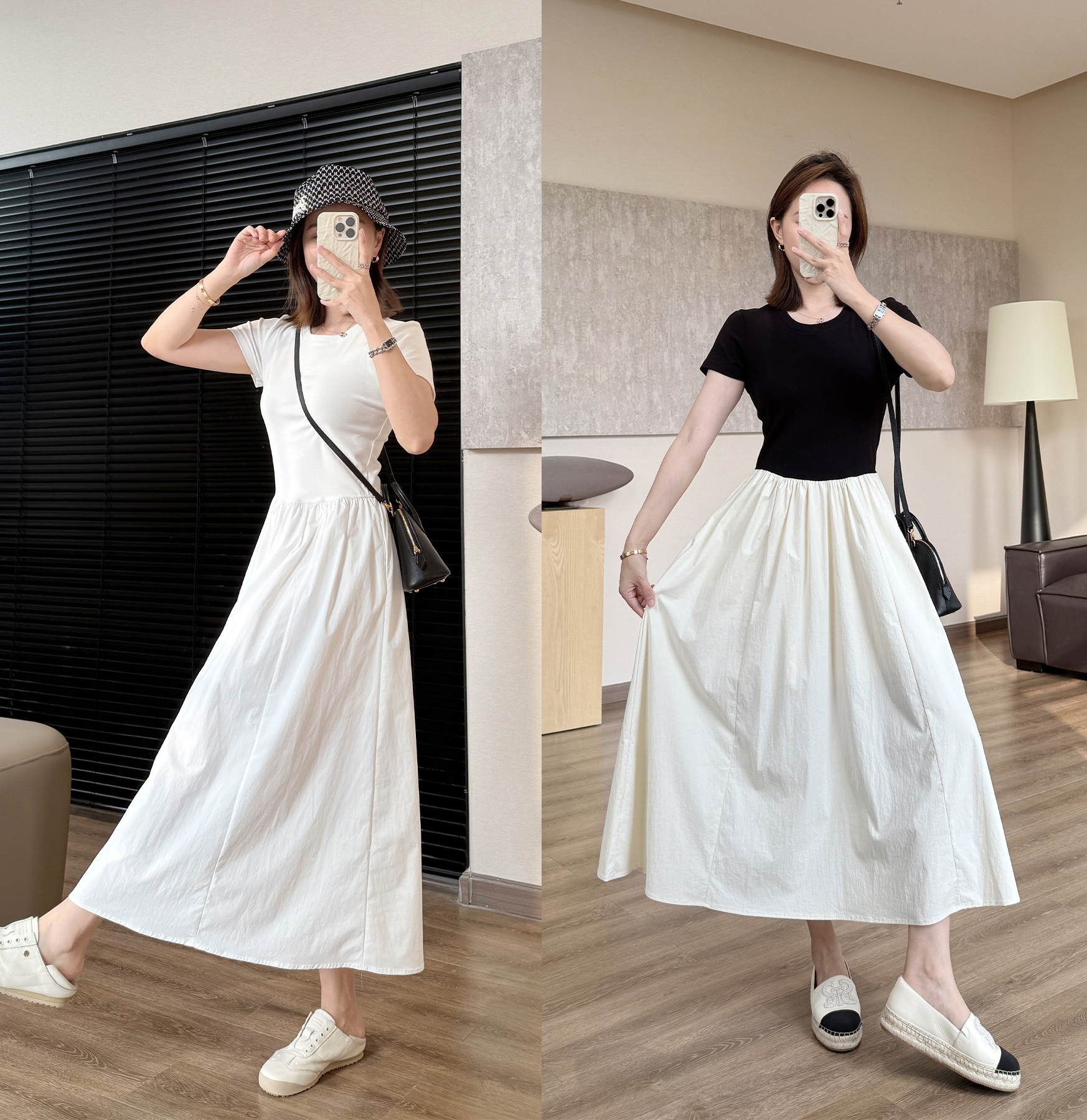 进口客供面料,棉➕液态❗️光滑凉快,穿了和没穿一样~简洁的剪裁,裙摆有防晒功效~裙长不挑身高,整体笔直显瘦。