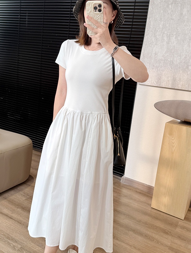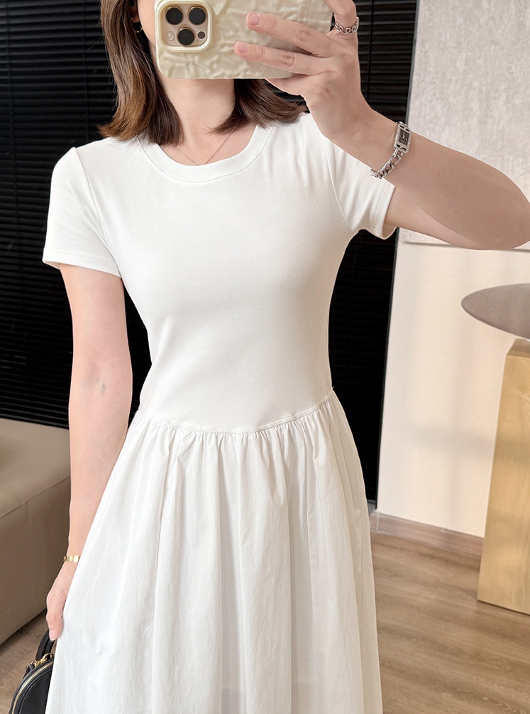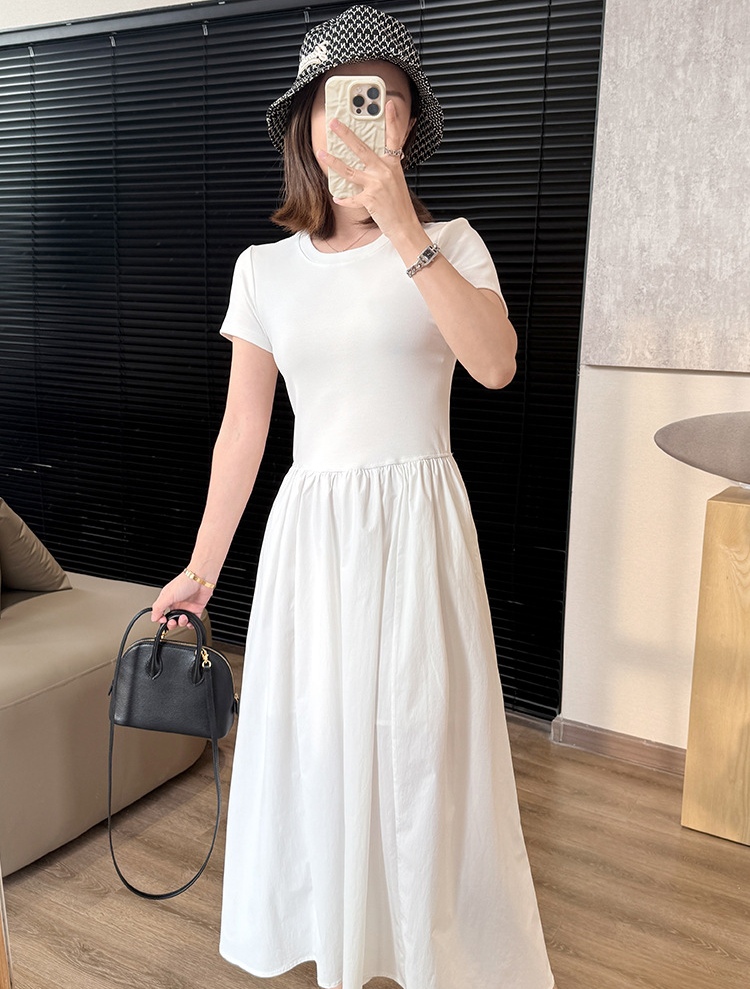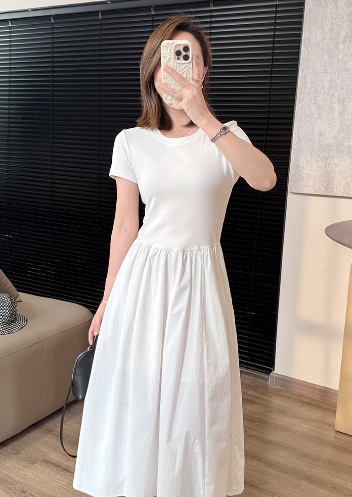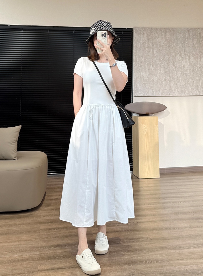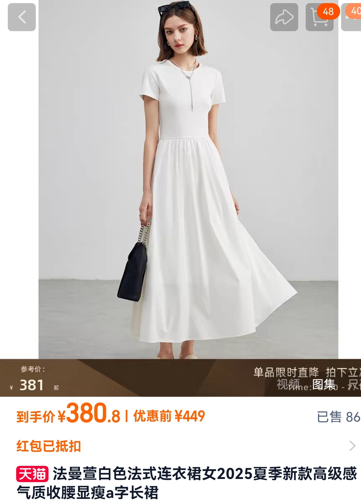 进口客供面料,棉➕液态❗️光滑凉快,穿了和没穿一样~简洁的剪裁,裙摆有防晒功效~裙长不挑身高,整体笔直显瘦。