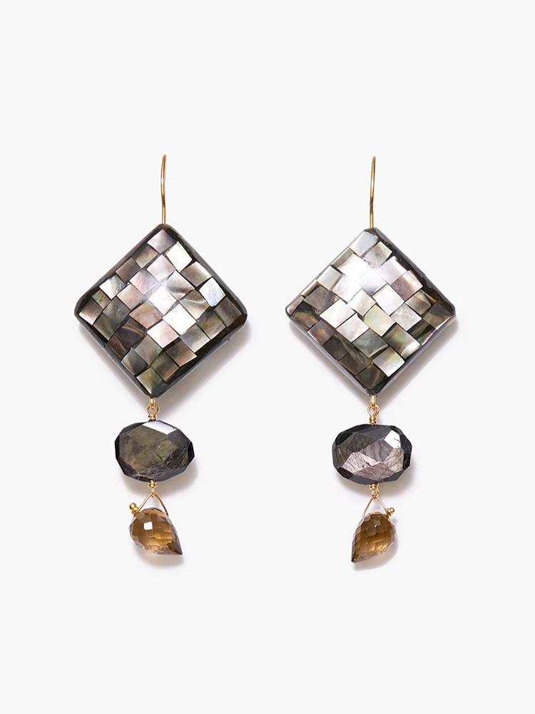 订购6周到|Chan Luu-SIREN-美人鱼 黑珍珠母贝 紫苏辉石 威士忌石英耳环[美国设计师]