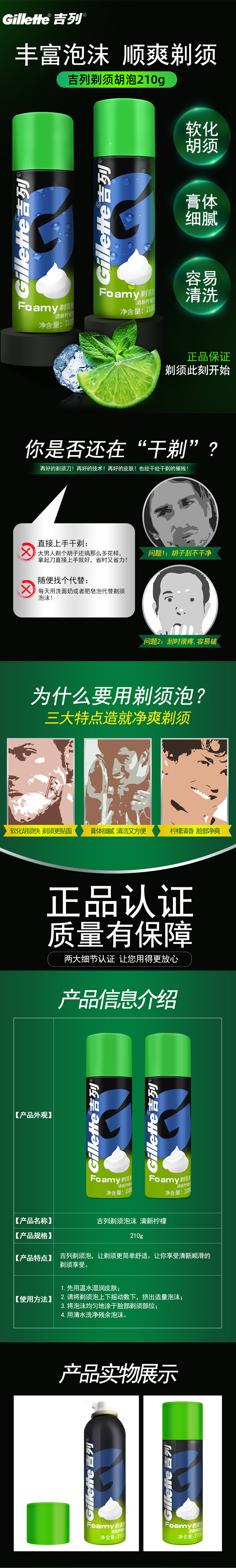 吉列剃须泡清新柠檬型(210g)【20012908】