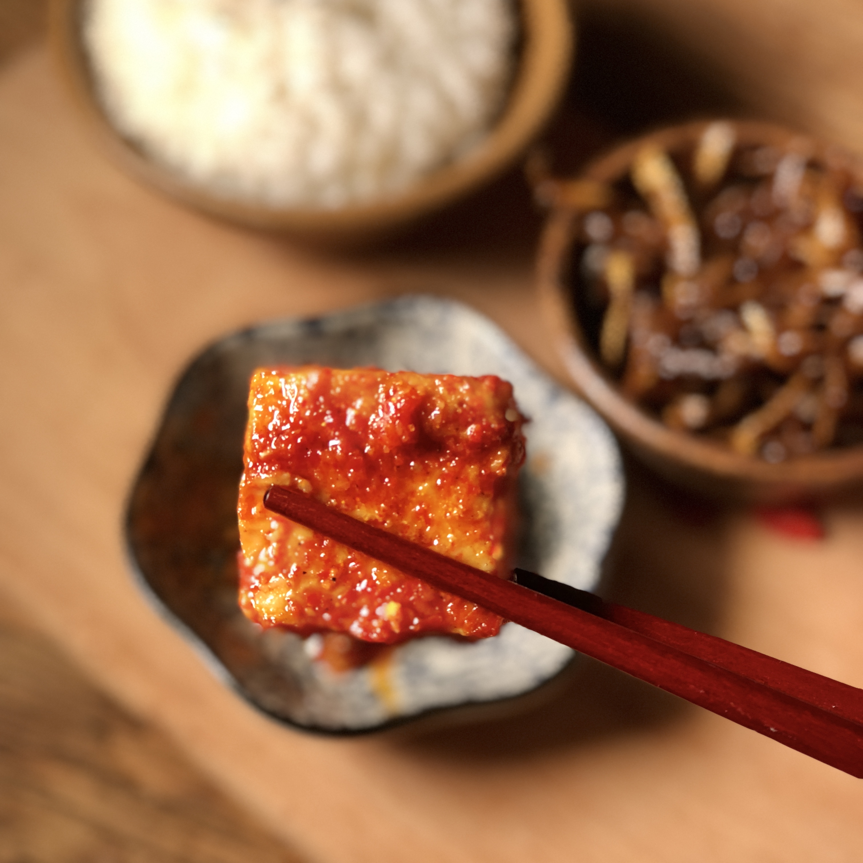 将鲜豆腐用民间工艺自然发酵、晾晒后,配以辣椒、花椒等佐料,再掺入无公害食用菜籽油、食盐等腌制而成,要经过近百道工序。