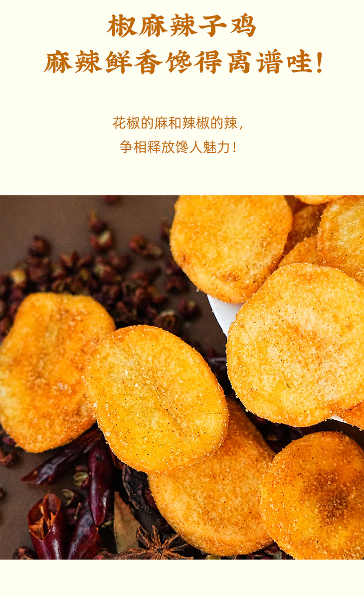 椒麻辣子鸡味:麻辣鲜香,花椒的麻爽与辣椒的鲜辣交织在一起,让人忍不住一口接一口,根本停不下来!