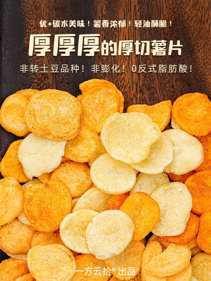 [屁侠推荐]一方云拾 厚厚厚切薯片 薯味原香 非膨化更健康 6种人气上头风味 酸甜咸香麻辣齐备
