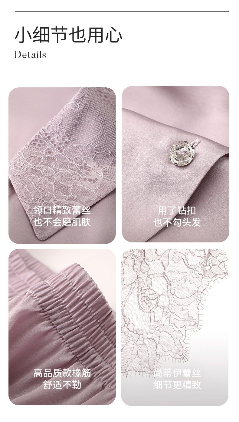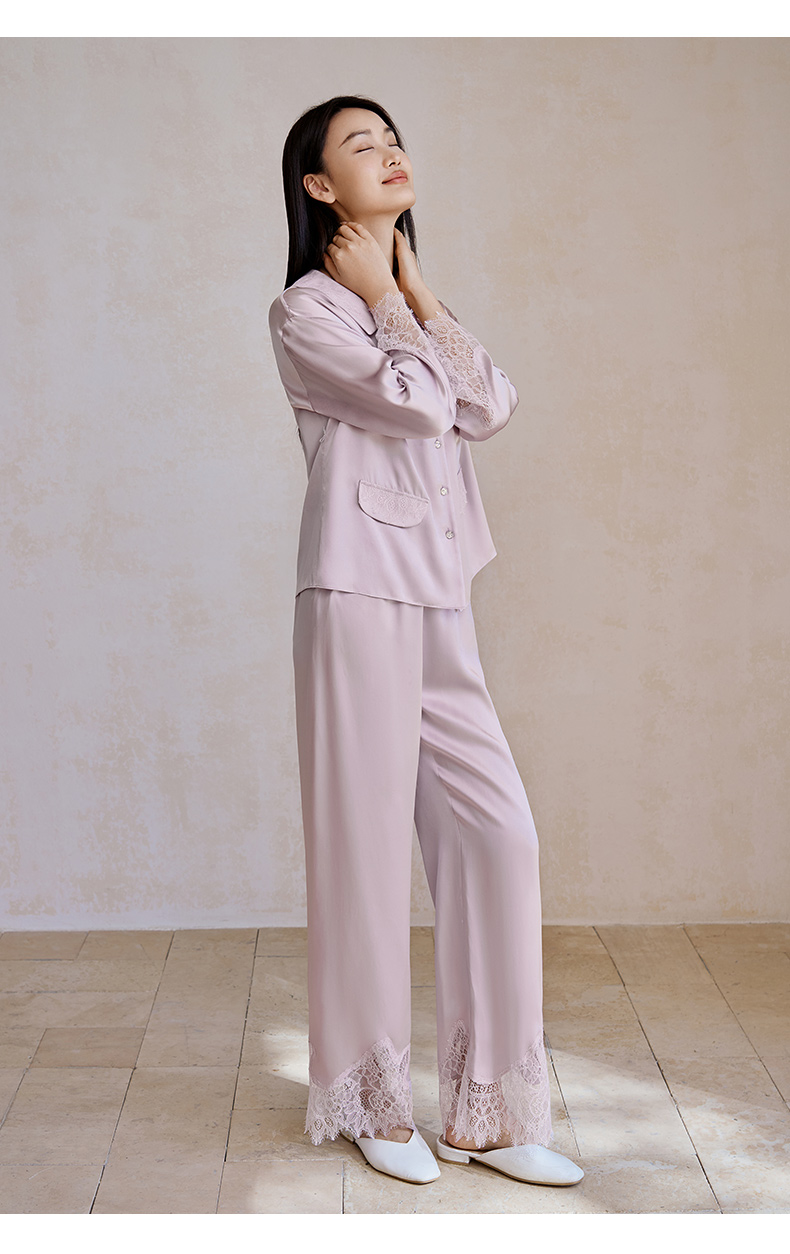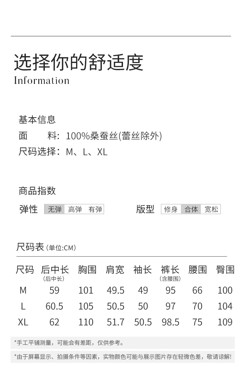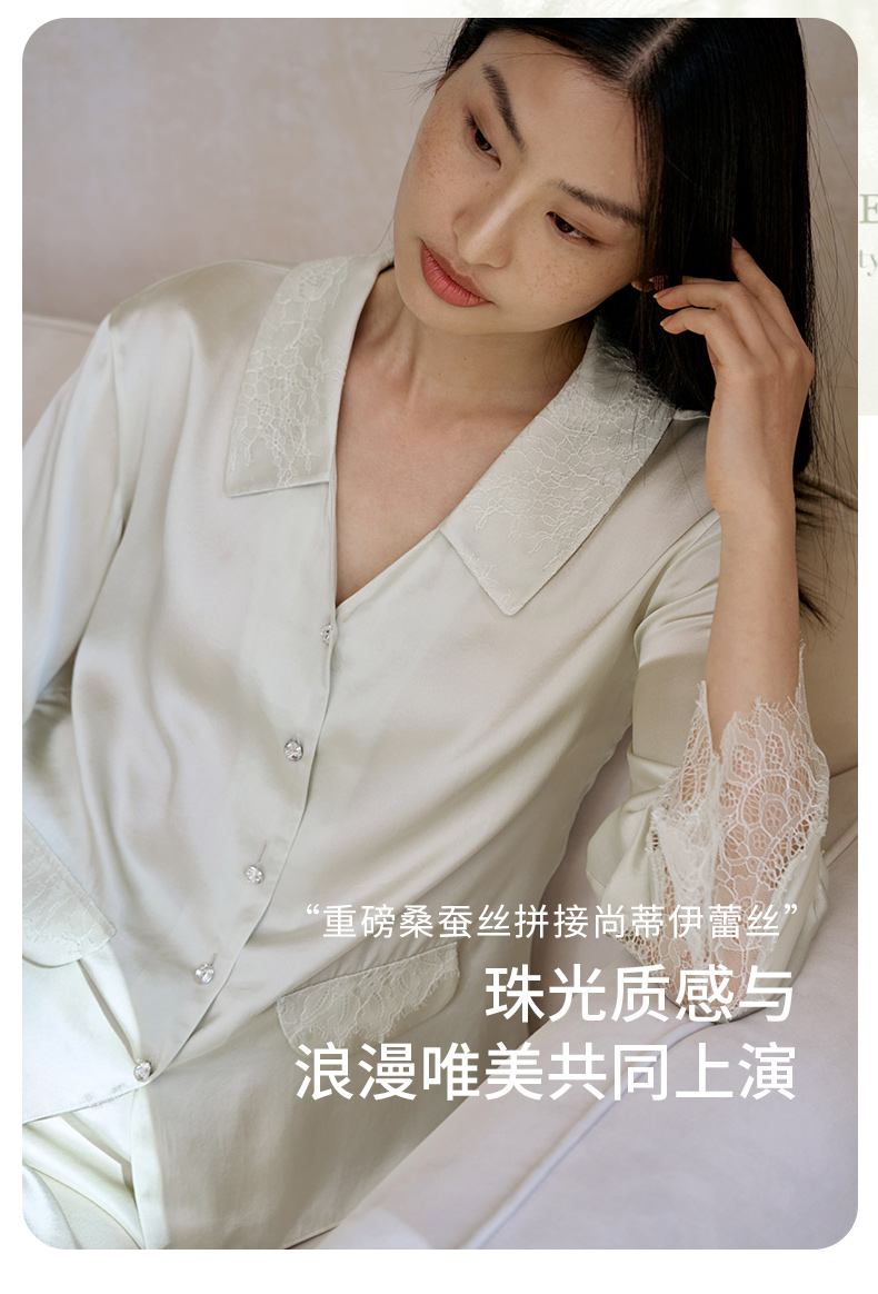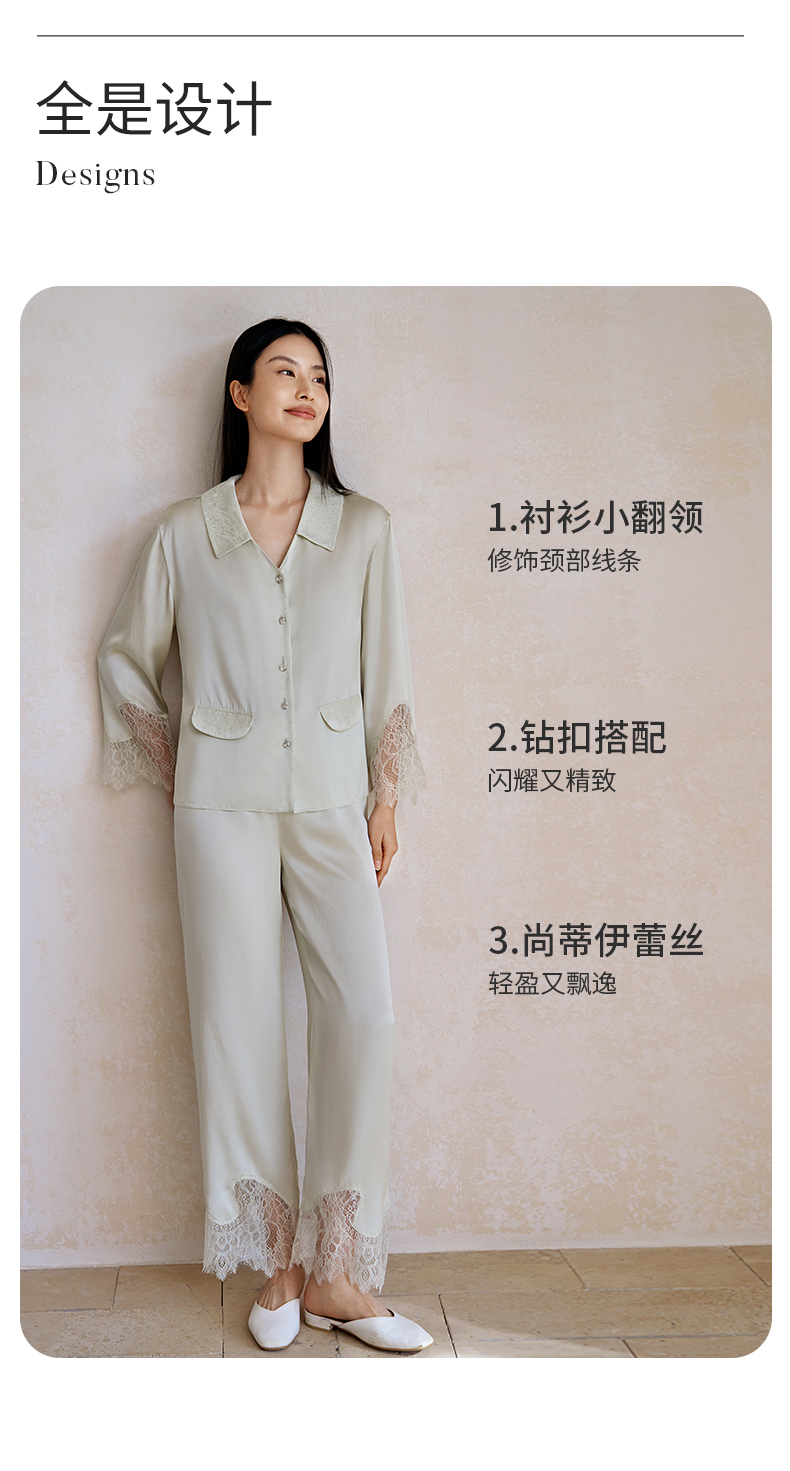19姆米重磅真丝睡衣女100%桑蚕丝优雅蕾丝家居服衣裤套春夏金三塔 YSFFA207