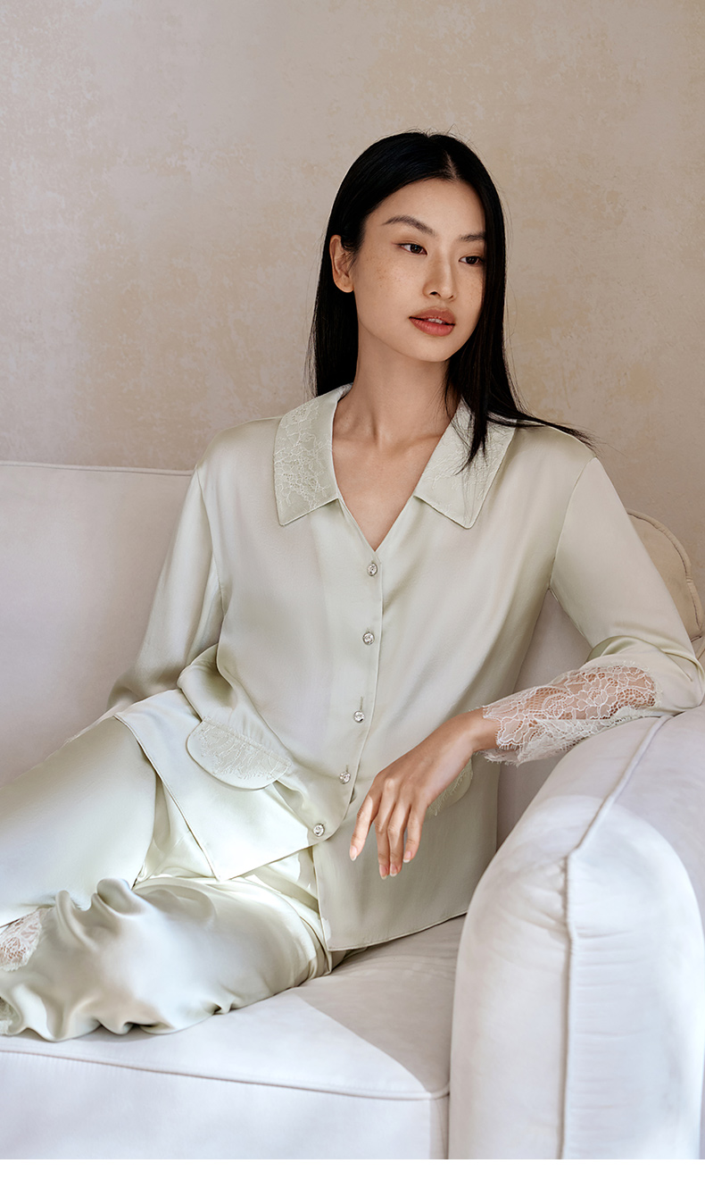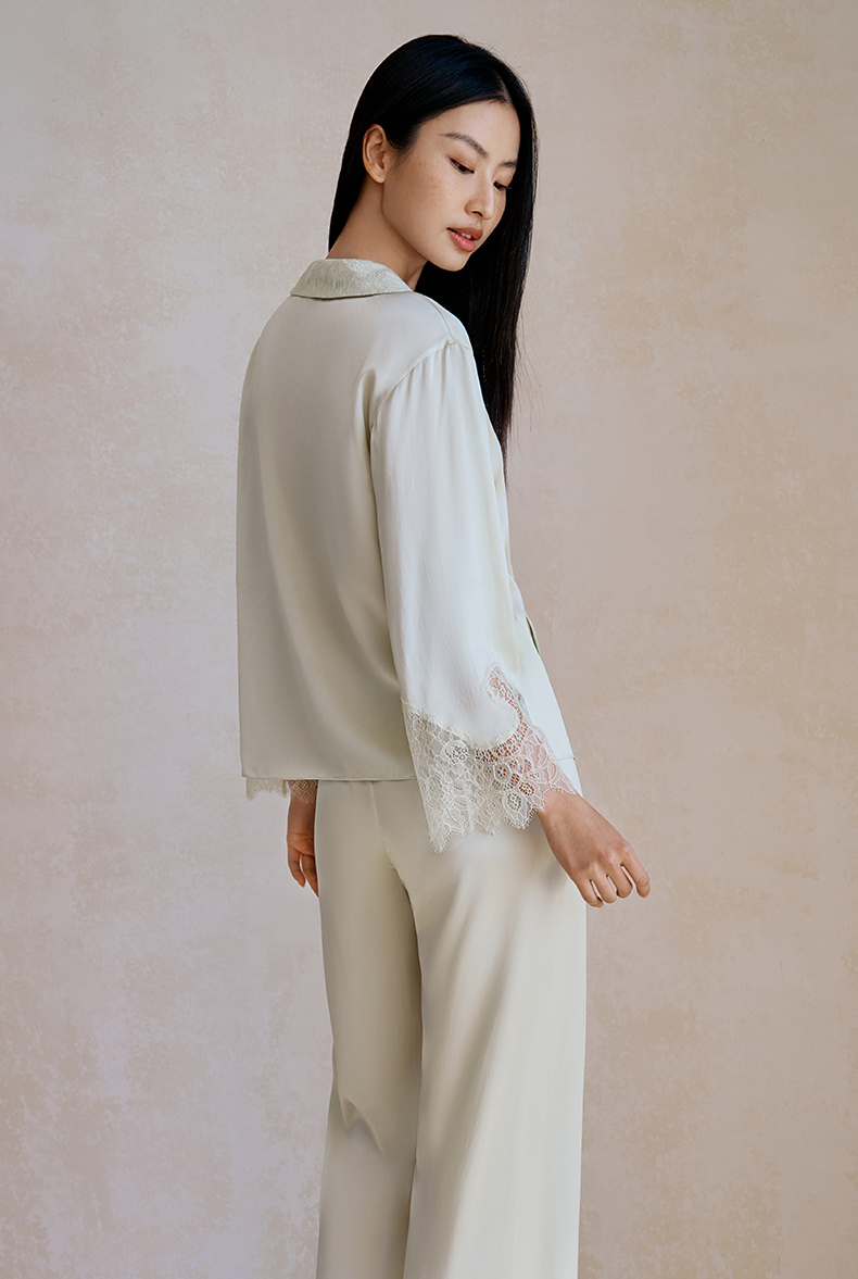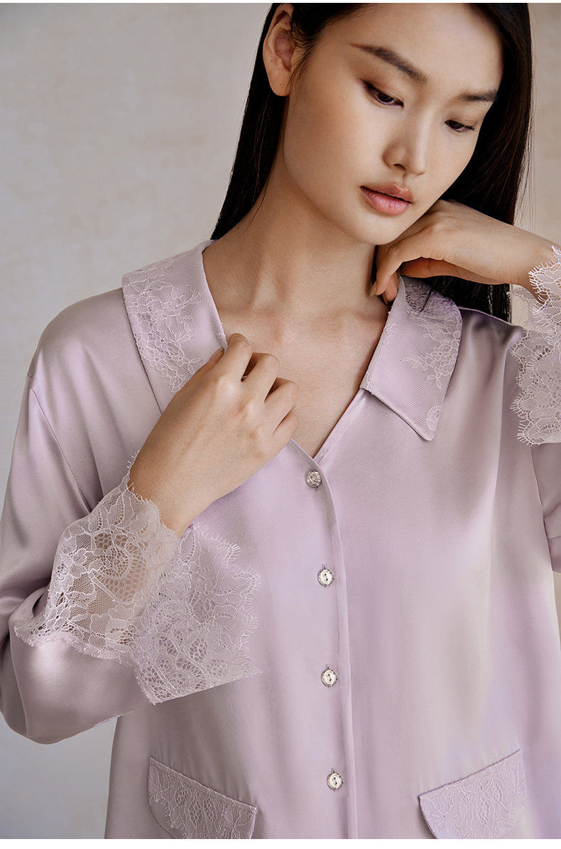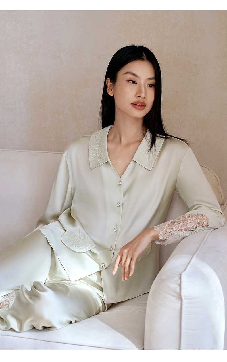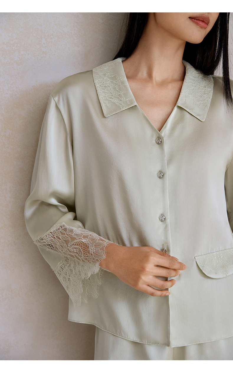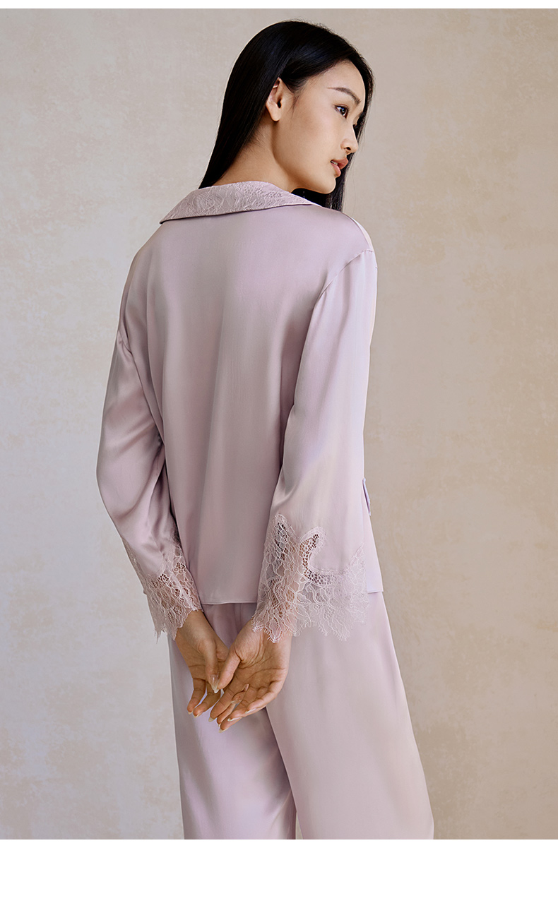 19姆米重磅真丝睡衣女100%桑蚕丝优雅蕾丝家居服衣裤套春夏金三塔 YSFFA207