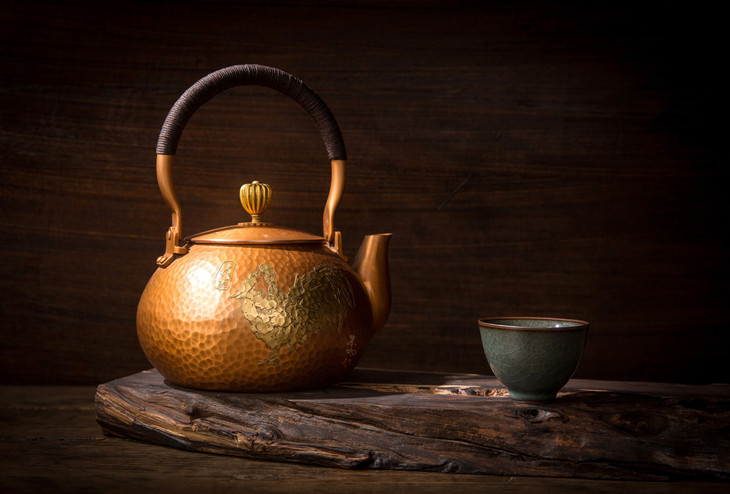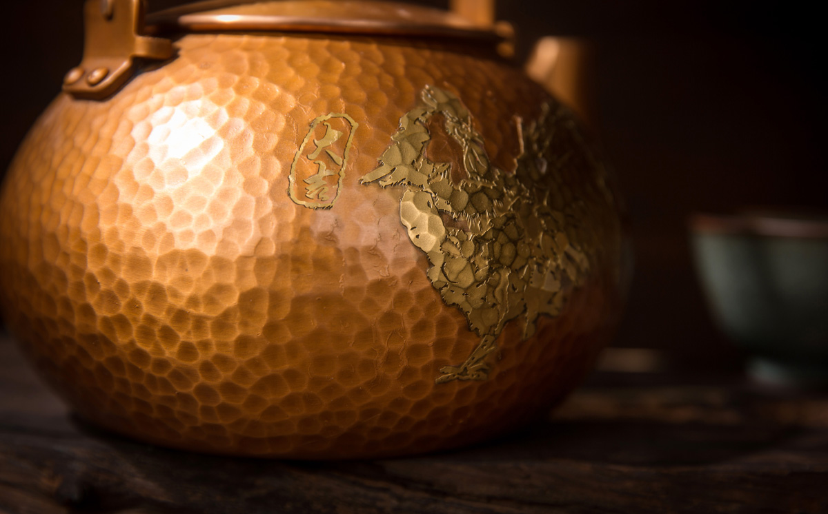 铜壶泡茶,可以使茶的口感更加醇厚绵长。铜壶也会在茶的泡养之下,色泽更加浑厚,形成自然的包浆。