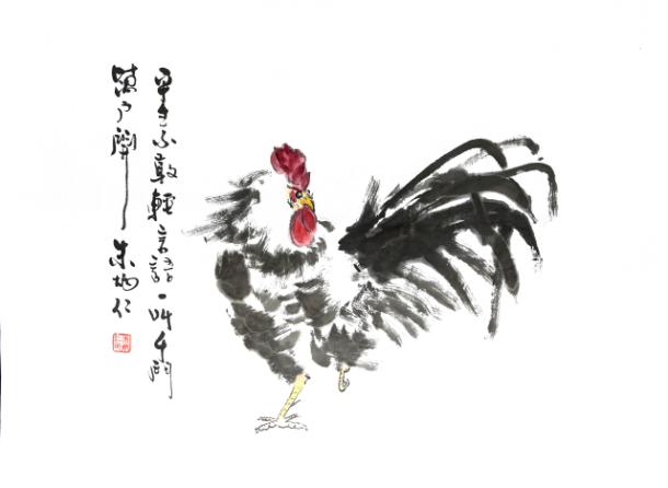 朱老师的《大吉图》,用笔简练、设色淡雅、意境老辣、喜庆高昂。题词为唐伯虎的名句“平身不敢轻言语,一唱千户万户开”。