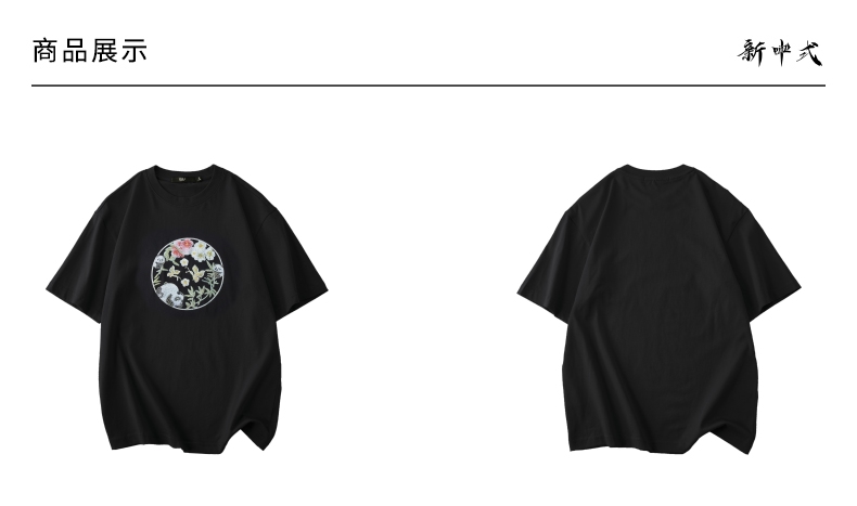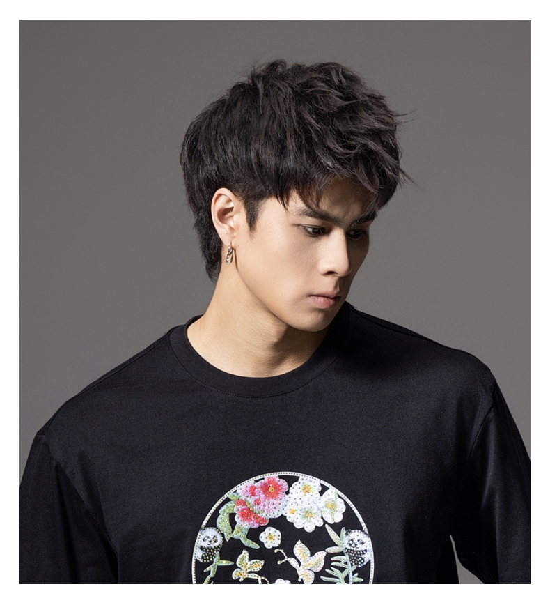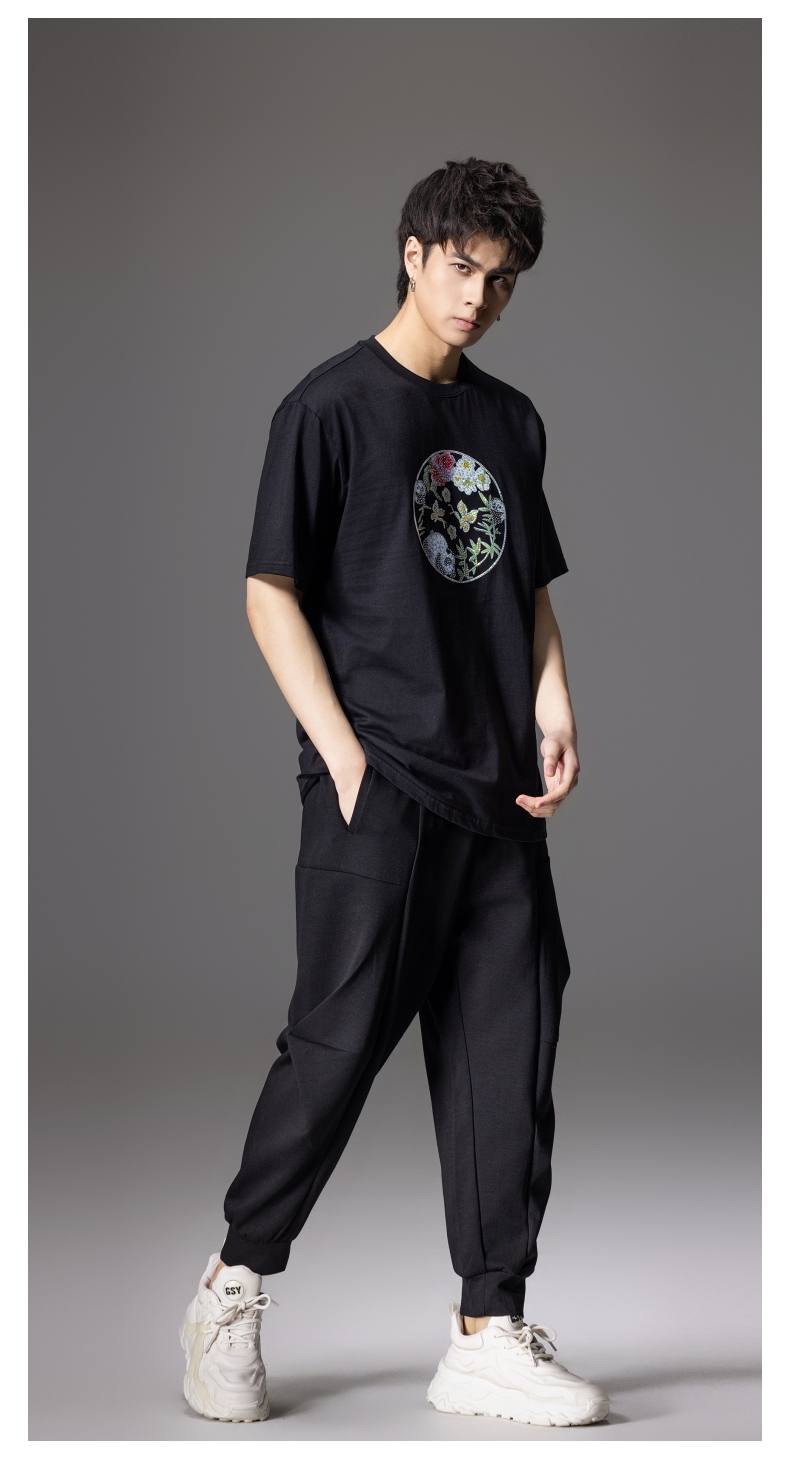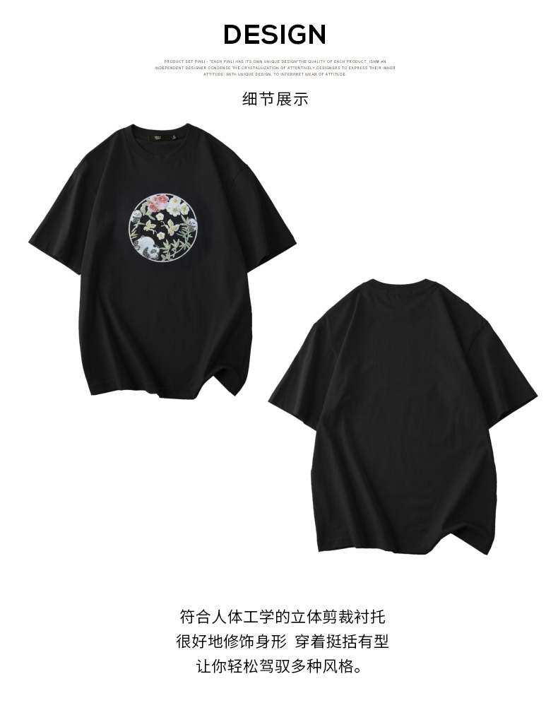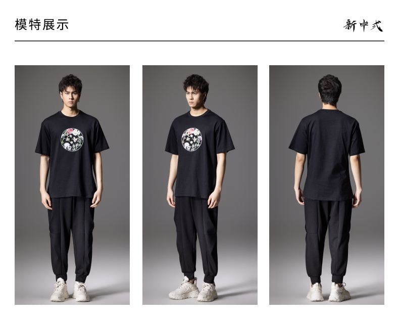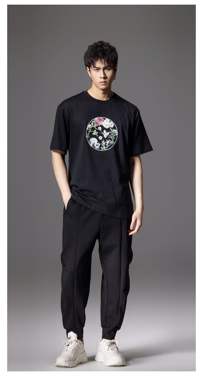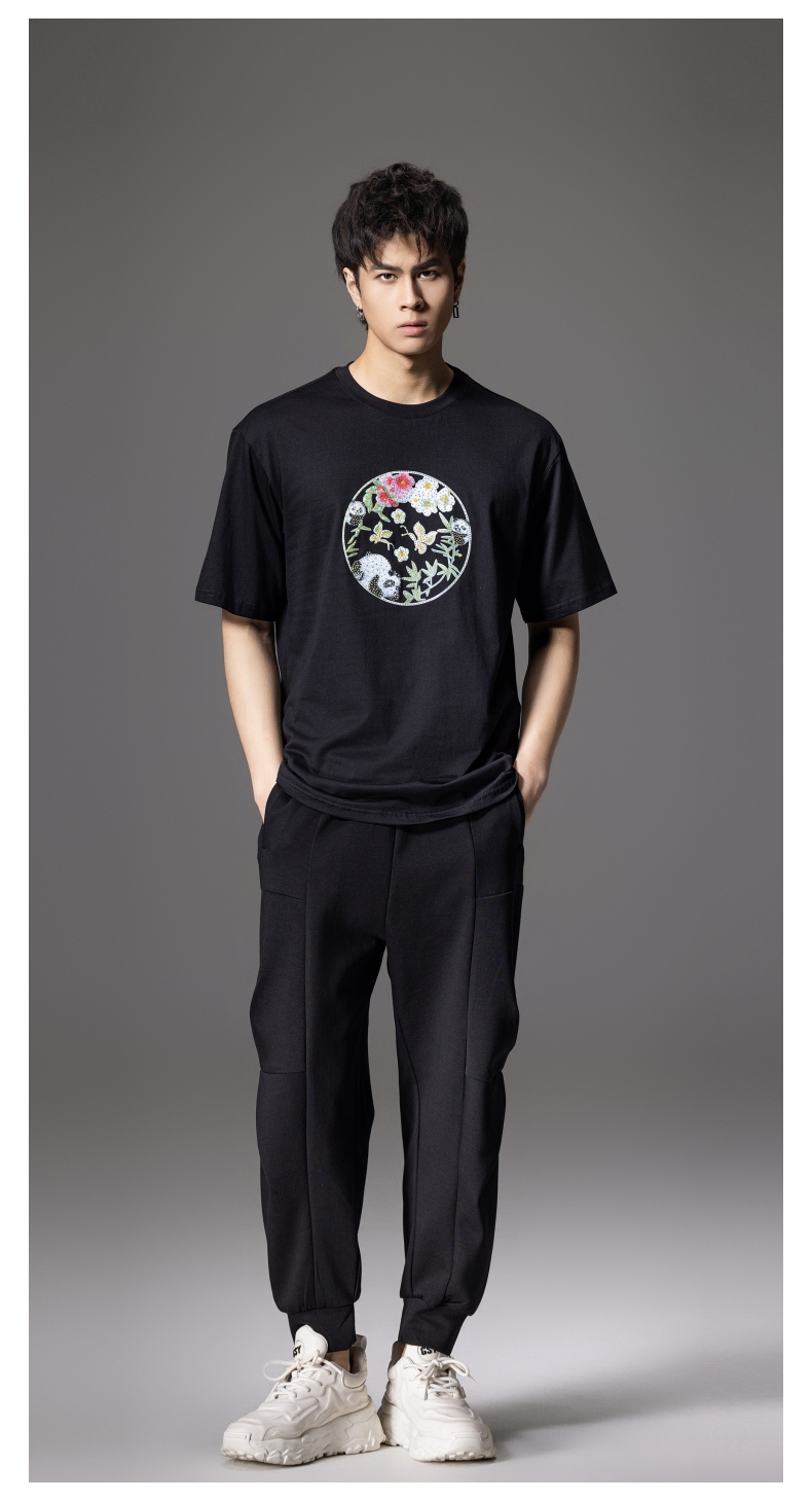 PINLI品立新中式2024夏季新款熊猫烫钻短袖T恤男士中国风休闲上衣BG242111023